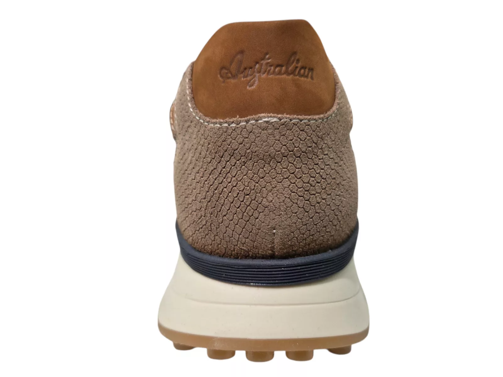 De Australian Yamato KK9 heren sneakers combineren sportieve elegantie met dagelijks comfort. Deze premium herensneaker van Australian is uitgevoerd in een stijlvolle beige-bruine en grijze kleurcombinatie en gemaakt van hoogwaardig leer en suède. Dankzij het uitneembare voetbed, de ademende voering en de rubberen profielzool is de Yamato KK9 ideaal voor langdurig dragen in het lente- en zomerseizoen 2026.