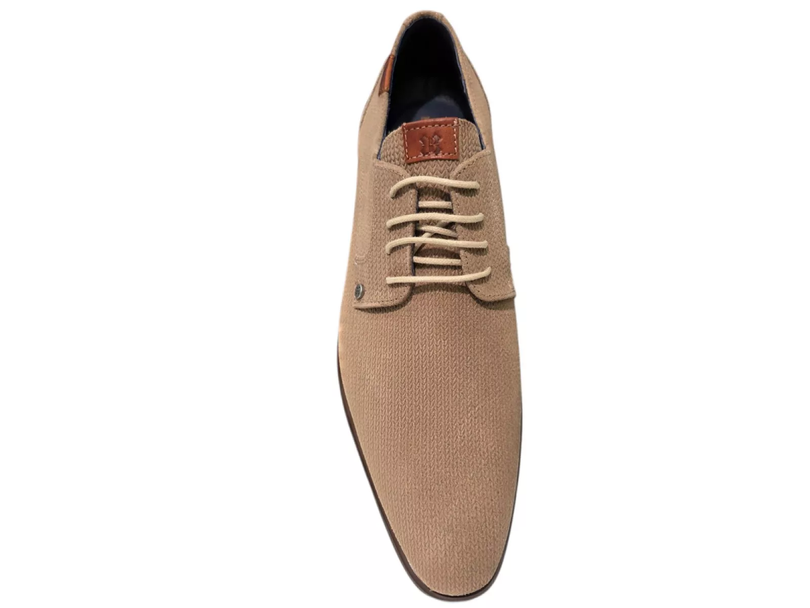 De subtiele ribstructuur in het beige leer geeft de schoen een onderscheidende, modieuze uitstraling zonder in te leveren op klasse.