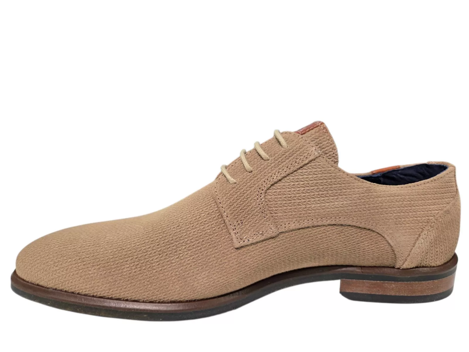 - Moderne beige leren herenschoen met unieke riblook structuur