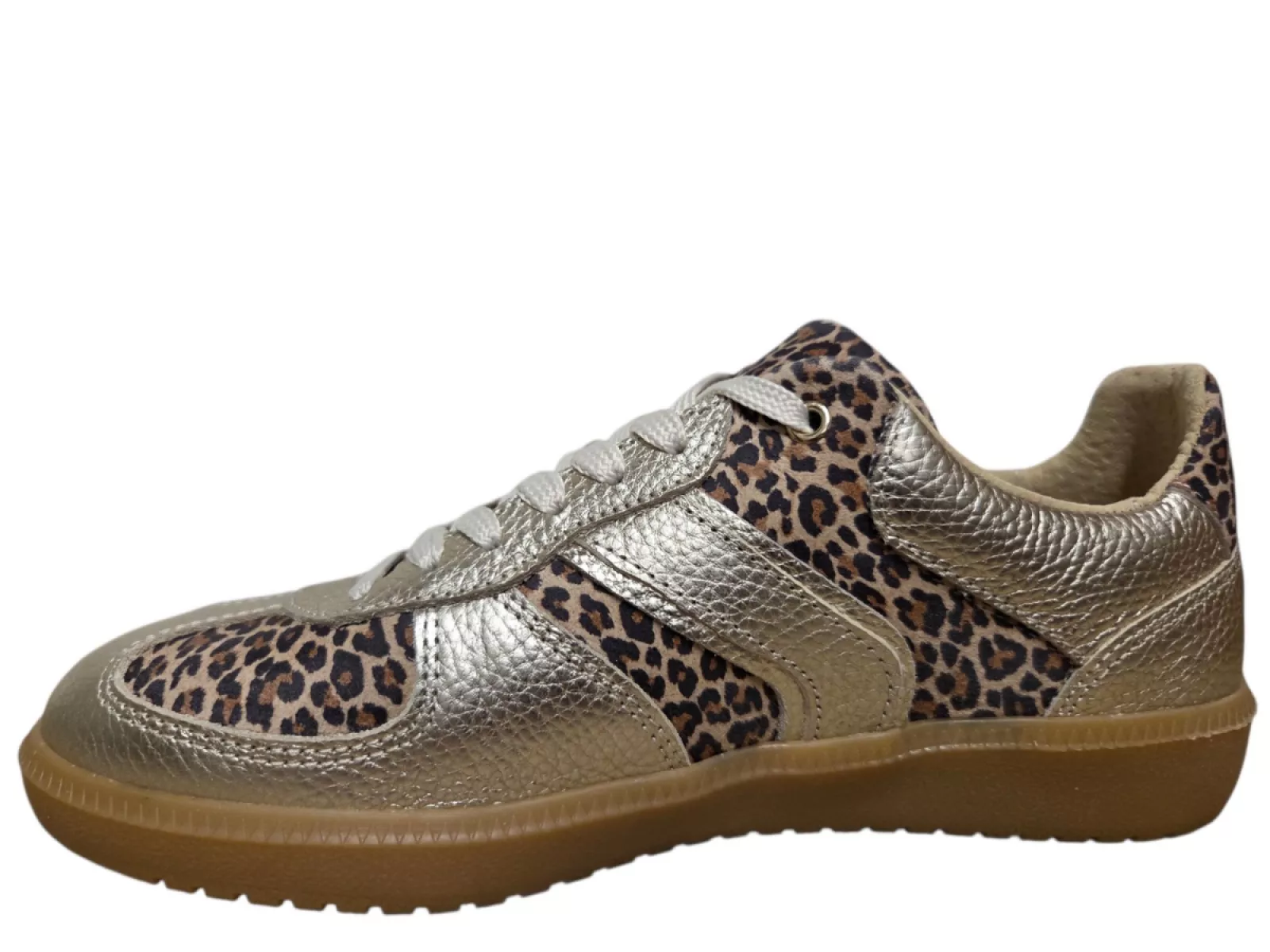 De Bridge 26157827 dames sneakers combineren stijl, comfort en kwaliteit in één opvallend design. Deze trendy gouden sneakers met luipaardprint zijn perfect voor het voorjaar en zomer 2026 en geven iedere outfit een modieuze upgrade. Dankzij het gebruik van hoogwaardig leer en een uitneembaar leren voetbed bieden deze sneakers optimaal draagcomfort voor dagelijks gebruik.