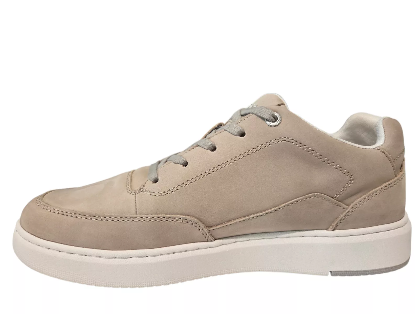 Stijlvolle beige sneakers voor heren, uitgevoerd in hoogwaardig nubuck. De textielen voering zorgt voor optimaal comfort en ademend vermogen. Met een uitneembaar voetbed, ideaal voor eigen inlegzolen. De rubberen zool biedt uitstekende grip. Gemaakt voor de lente/zomer collectie 2026. Normale pasvorm en praktische vetersluiting. Perfect voor elke casual gelegenheid.