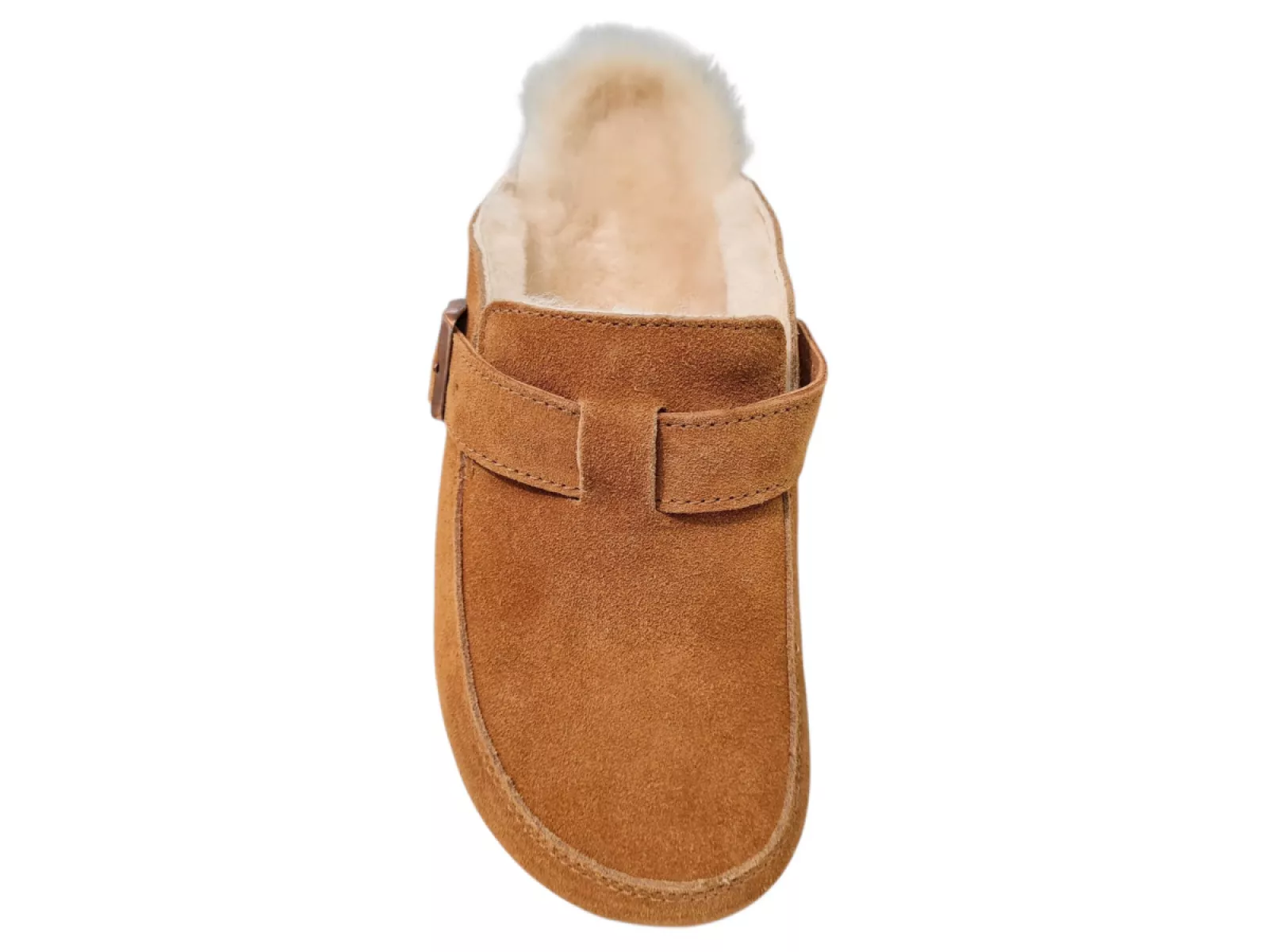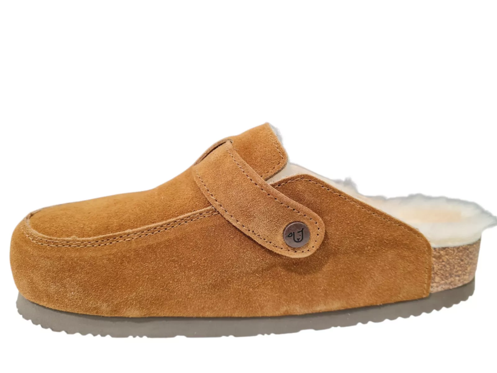 Ontdek de Fellhof Dames Pantoffels in stijlvolle cognac. Deze pantoffels zijn bekleed met luxe suede en volledig gevoerd met 100% Merinowol voor optimaal comfort. Dankzij de open hiel en de verstelbare gespsluiting op de wreef, zijn ze gemakkelijk aan te trekken en perfect voor elke voet. De rubberen profielzool biedt grip, terwijl de kurken tussenzool van 3,5 cm zorgt voor extra steun.