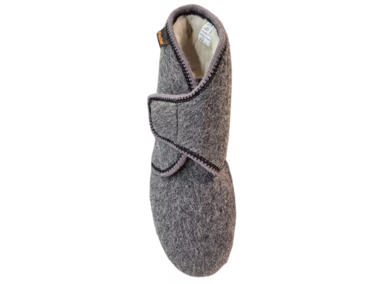 Fischer 2613 82 Hoge Pantoffels Grijs 100% Wol Heren