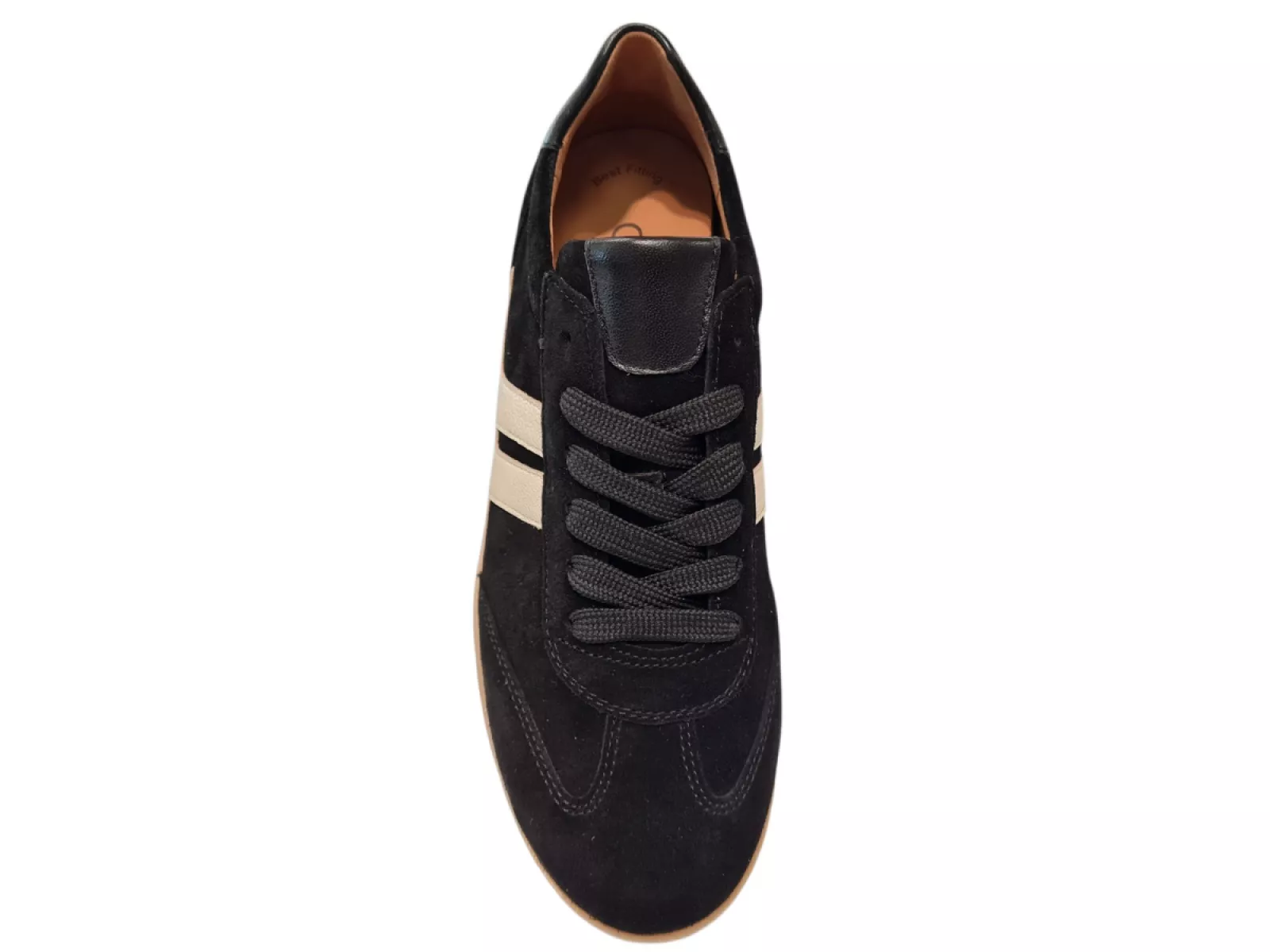Ontdek de Gabor Dames Sneakers, stijlvol en comfortabel. Gemaakt van luxe suede en gevoerd met leer voor optimaal draagcomfort. Het uitneembare voetbed biedt extra flexibiliteit. De honingkleurige rubber zool zorgt voor een stevige grip, terwijl de vetersluiting zorgt voor een perfecte pasvorm. Beschikbaar in klassiek zwart. Ideaal voor elke gelegenheid.
