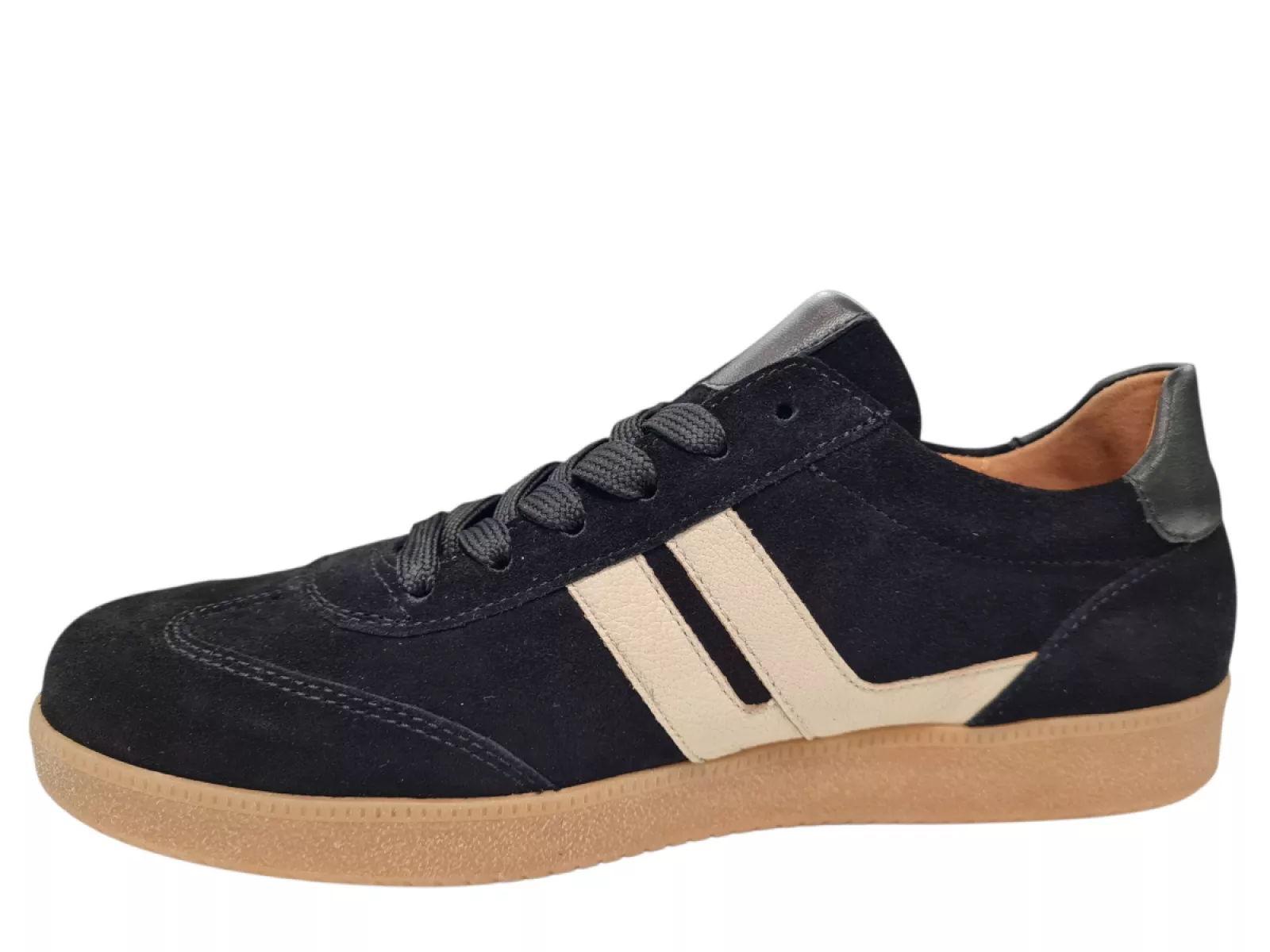 - Suede Gekleed: De buitenkant van de sneakers is gemaakt van hoogwaardig suede, wat zorgt voor een luxe uitstraling en een comfortabele pasvorm.