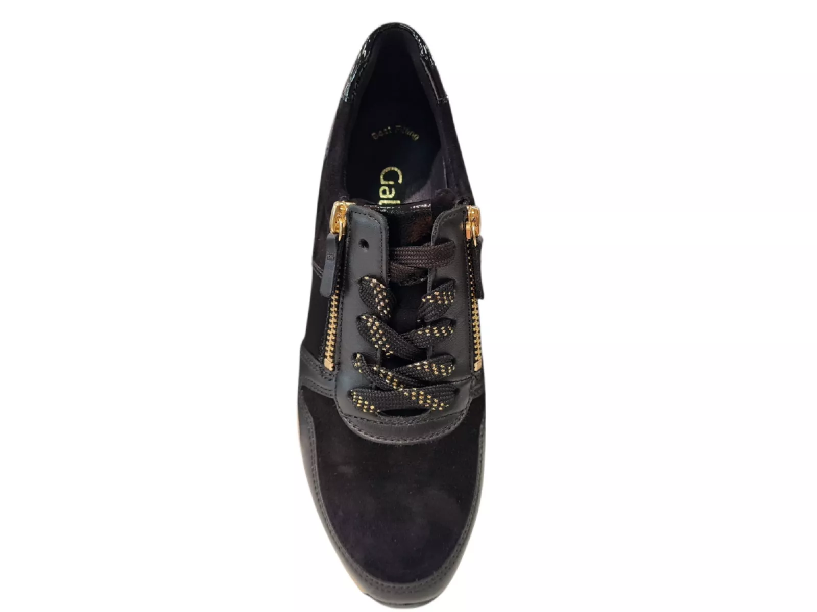Gabor dames sneakers zijn uitgerust met zowel een veter- als ritssluiting. Deze dubbele sluiting zorgt voor een perfecte pasvorm en maakt het aan- en uittrekken van de schoenen eenvoudig. De sneakers zijn beschikbaar in de tijdloze kleur zwart, waardoor ze gemakkelijk te combineren zijn met verschillende outfits.