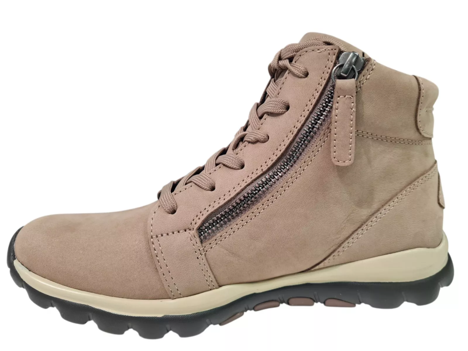 Ontdek de Gabor Dames Veterschoenen, perfect voor stijl en comfort. Dankzij de rollingsoft technologie geniet je van een soepele afwikkeling bij elke stap. Het nubuck bovenwerk geeft een elegante uitstraling, terwijl het uitneembare voetbed zorgt voor optimale ondersteuning. De rubberen profielzool biedt uitstekende grip. Dit hoge model heeft zowel een dubbele rits als vetersluiting voor een gemakkelijke instap. Verkrijgbaar in een veelzijdige beige kleur. Ideaal voor elke gelegenheid!