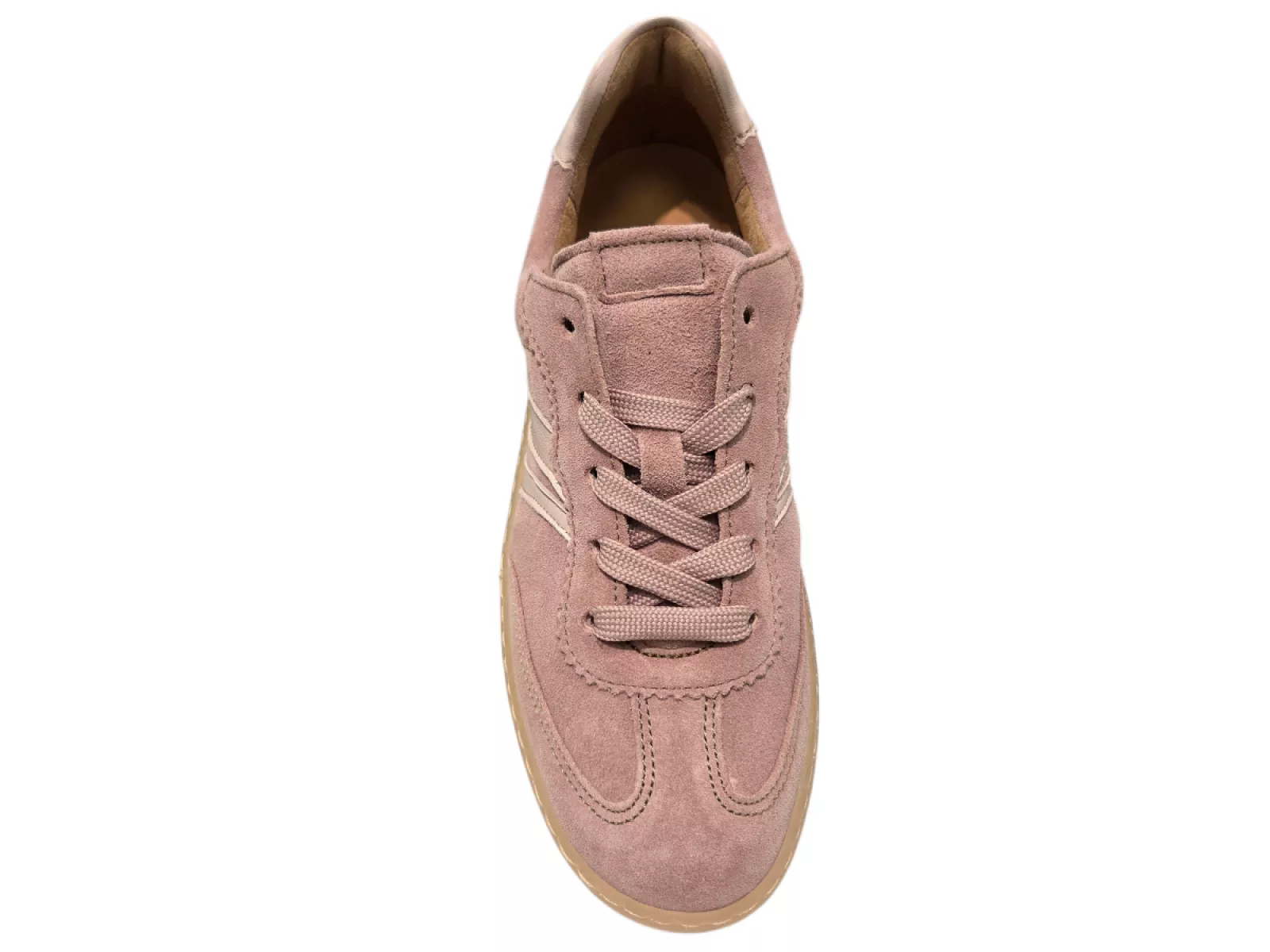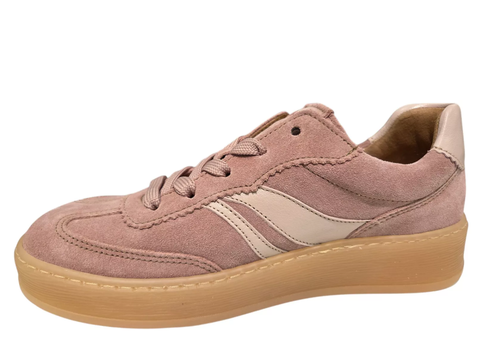 Ontdek de Gabor 86.475.43 dames sneakers in een stijlvolle oud roze tint. Deze zomerse sneakers zijn bekleed met hoogwaardig suède en hebben een luxe leren voering. Dankzij het uitneembare leren voetbed geniet je van optimaal comfort. De rubberen zool biedt uitstekende grip, terwijl de vetersluiting zorgt voor een perfecte pasvorm. Perfect voor casual dagen!