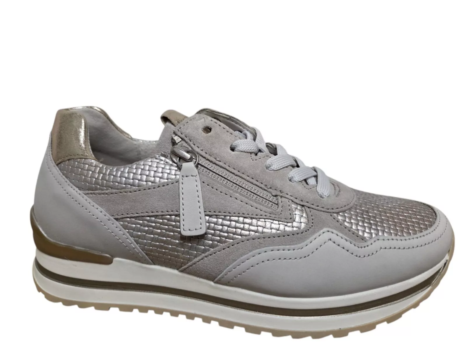 Deze stijlvolle beige sneakers van Gabor combineren comfort en elegantie in één ontwerp. Het hoogwaardige leren bovenwerk zorgt voor een luxe uitstraling en een perfecte pasvorm. Dankzij de combinatie van veters en rits trek je de schoen eenvoudig aan en uit, terwijl de normale pasvorm zorgt voor optimaal draagcomfort.