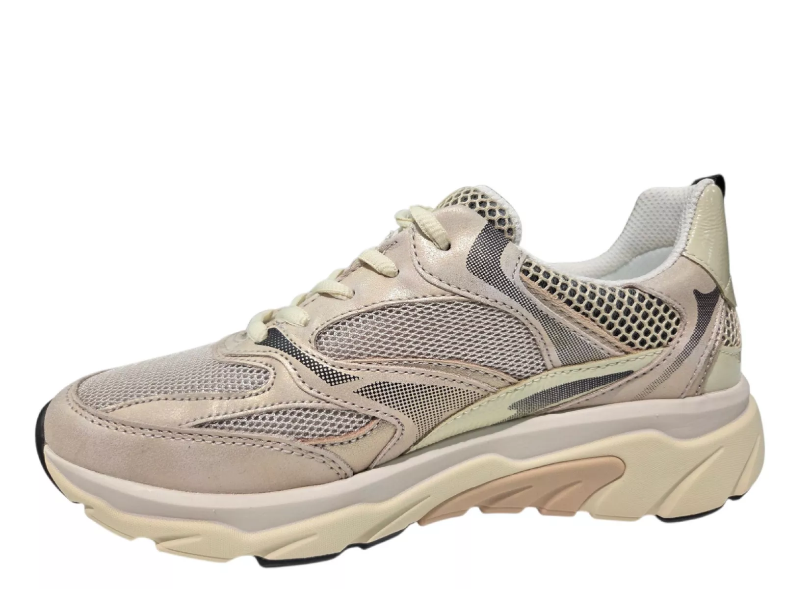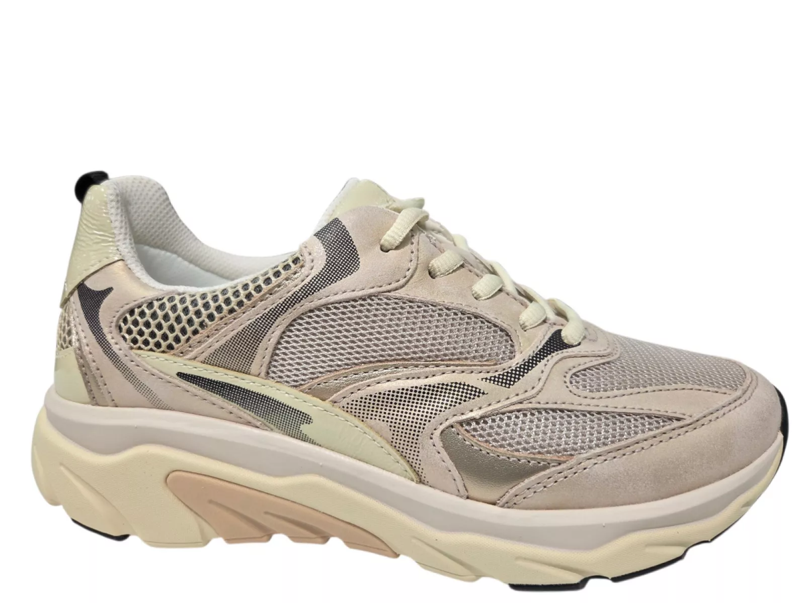 Gabor 86.936.39 Rolling Soft Sneakers Beige Leer en Mesh Dames Breed