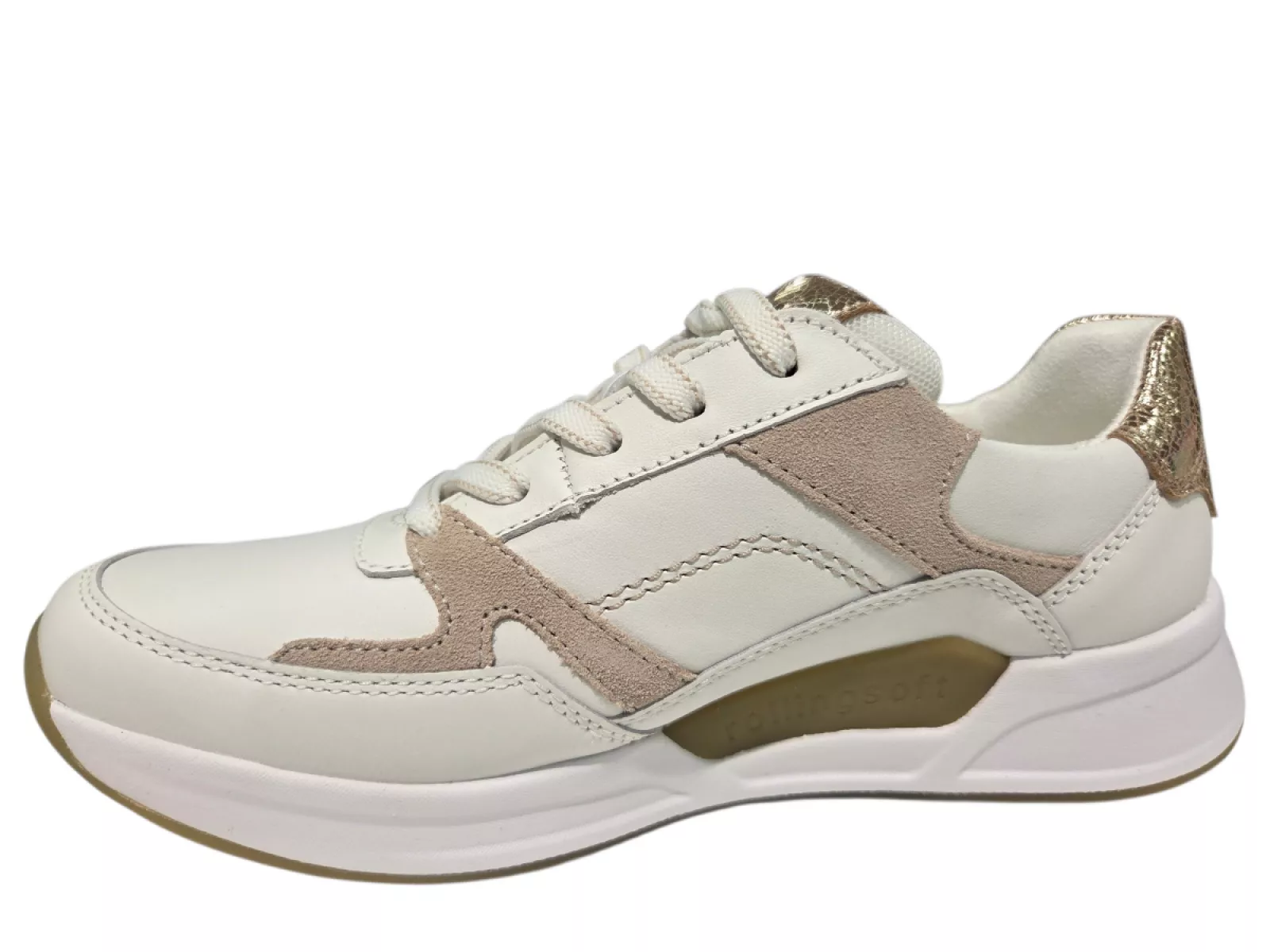 Gabor Rolling Soft 86.958.52 Dames Sneakers – Wit met Gouden Accenten