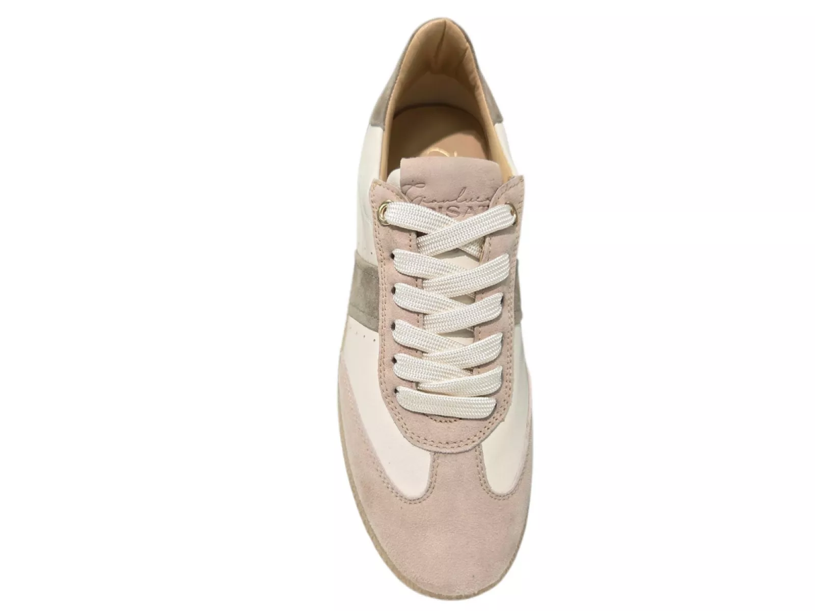 Gianluca Pasati Carol Tof-Lat-Sal Dames Sneakers – Wit met Bruin en Roze – Leer & Suede – Voorjaar/Zomer 2026