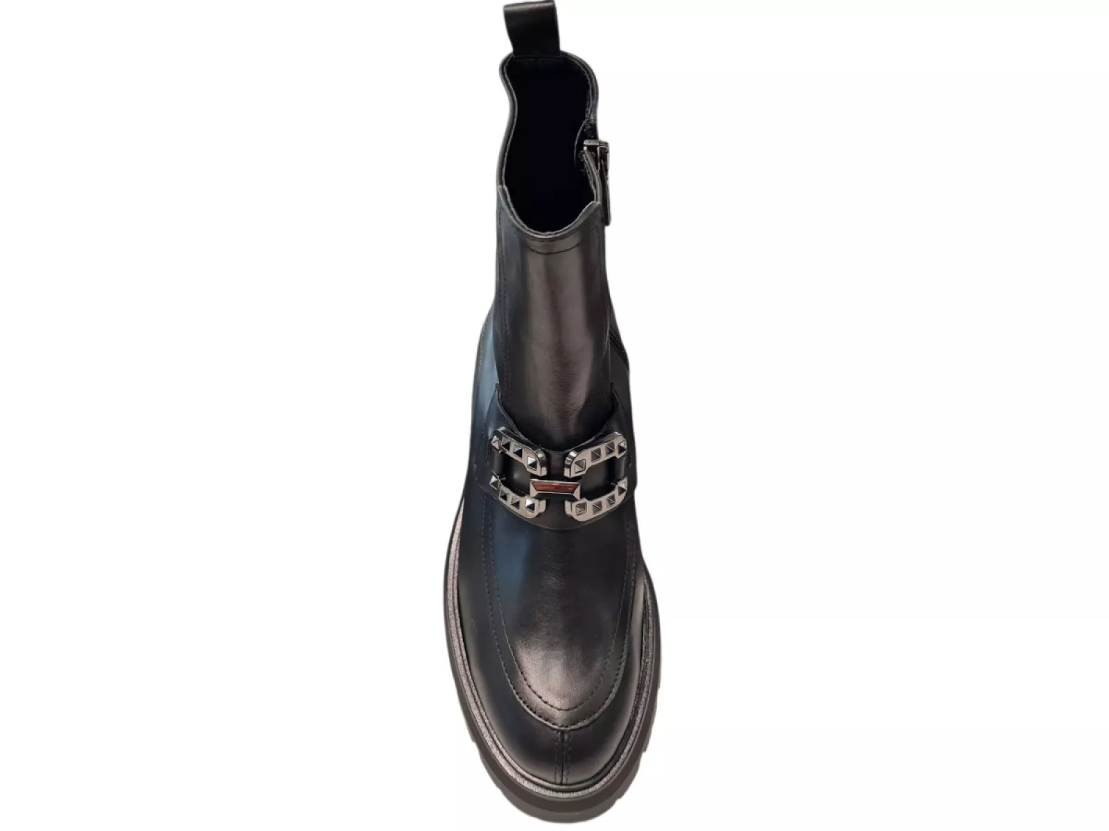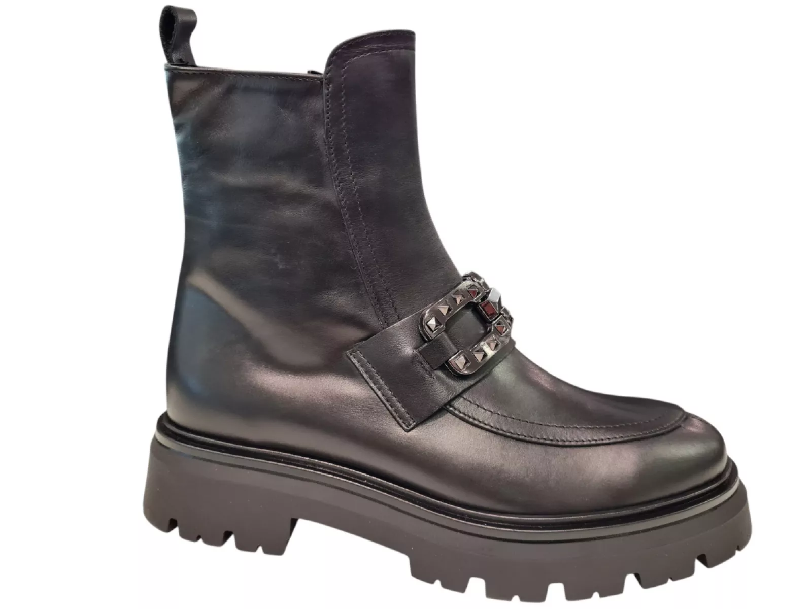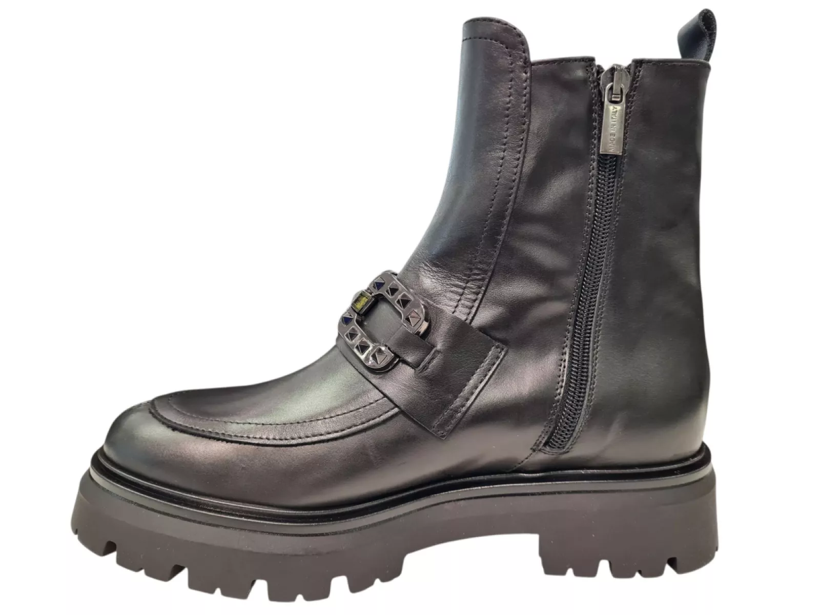 Ontdek de Gianluca Pisati Dames Enkellaarzen, gemaakt van hoogwaardig leer en volledig leren gevoerd voor optimaal comfort. Deze laarzen zijn voorzien van een vast voetbed en een robuuste rubberen profielzool voor uitstekende grip. De handige ritssluiting en speelse schakels op de wreef geven een unieke uitstraling. Verkrijgbaar in klassiek zwart, perfect voor elke gelegenheid. Voeg een tijdloze stijl toe aan je schoenen collectie.