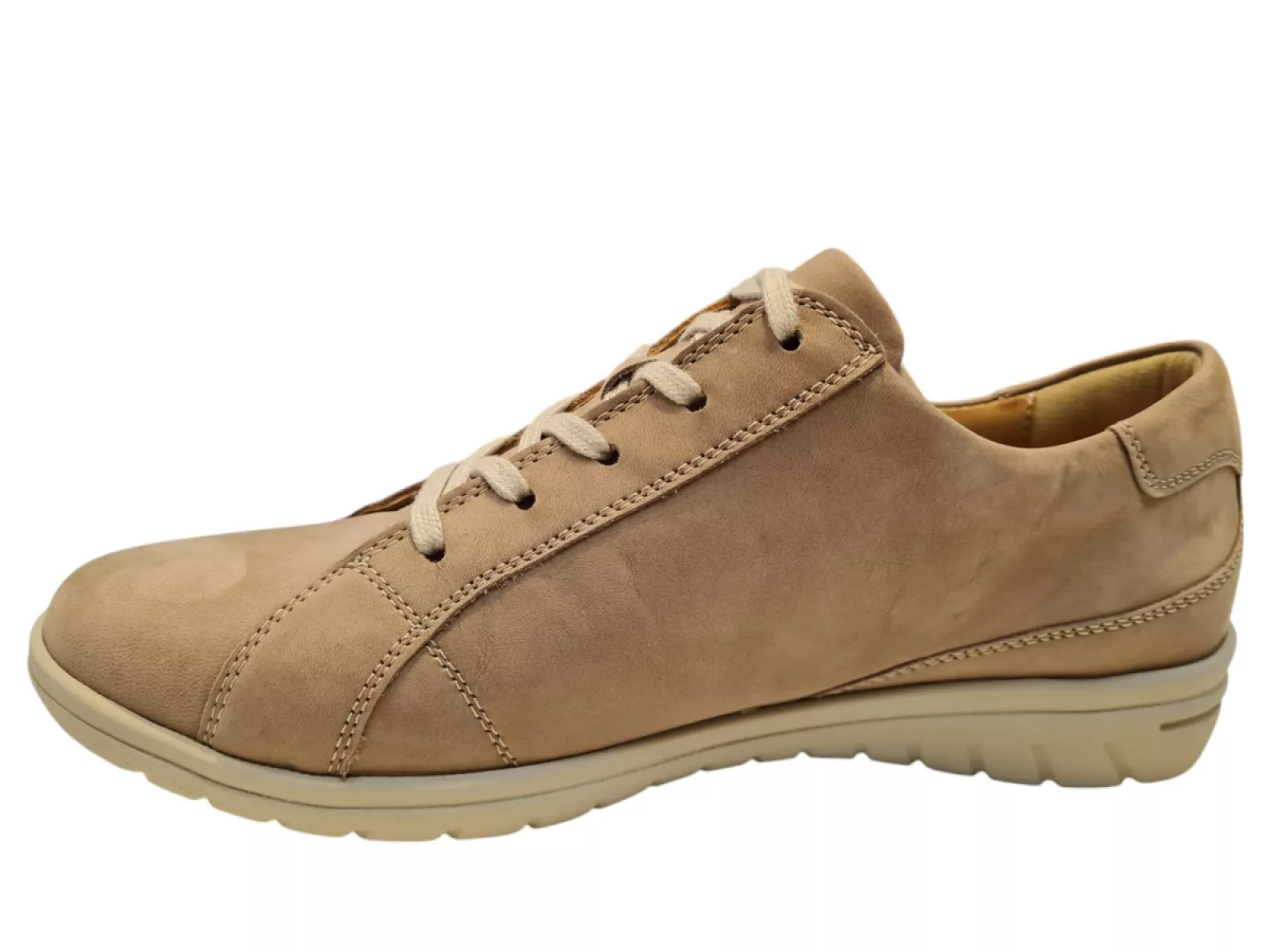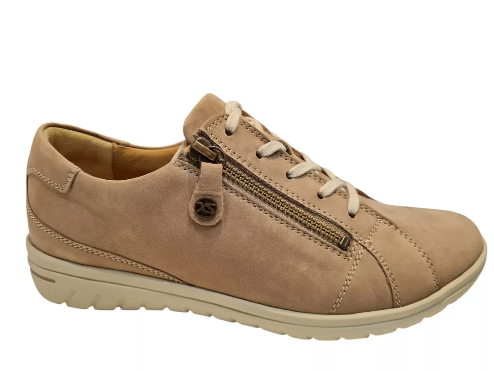 Ontdek de Hartjes Dames Sneakers in beige. Gemaakt van nubuck met een leren voering, bieden deze sneakers comfort en stijl. Het uitneembare voetbed en de rubberen profielzool zorgen voor een uitstekende pasvorm en grip. Met zowel veter- als ritssluiting zijn ze makkelijk aan en uit te trekken. Geschikt voor brede voeten (maat G).