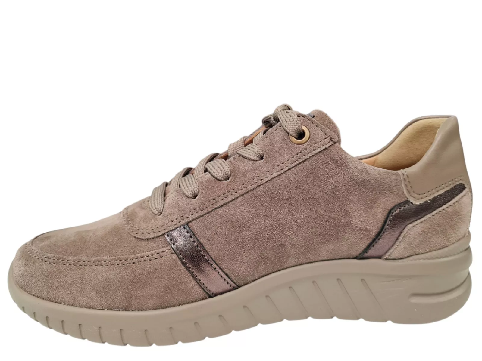 Ontdek de Hartjes Dames Sneakers in stijlvol beige. Deze sneakers zijn gemaakt van suède en voorzien van een leren voering voor optimaal comfort. Met een breedtemaat G+ en een uitneembaar voetbed bieden ze een perfecte pasvorm. De rubberen profielzool zorgt voor goede grip, terwijl de veter- en ritssluiting een trendy uitstraling geven. Perfect voor elke gelegenheid!