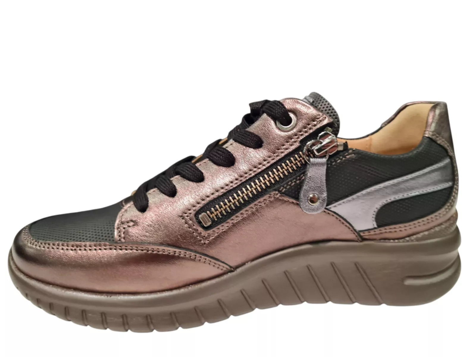 Hartjes G+ Brons Met Zwarte Dames Sneakers