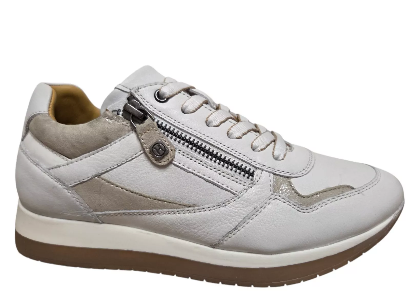 Ontdek de perfecte mix van stijl en comfort met de Helioform Dames Sneakers 253.062.0359, ontworpen voor dames die geen compromis willen tussen fashion en draagcomfort. Deze witte sneakers met gouden accenten zijn ideaal voor het voorjaar en zomer 2026 en passen bij elke casual of chique outfit.