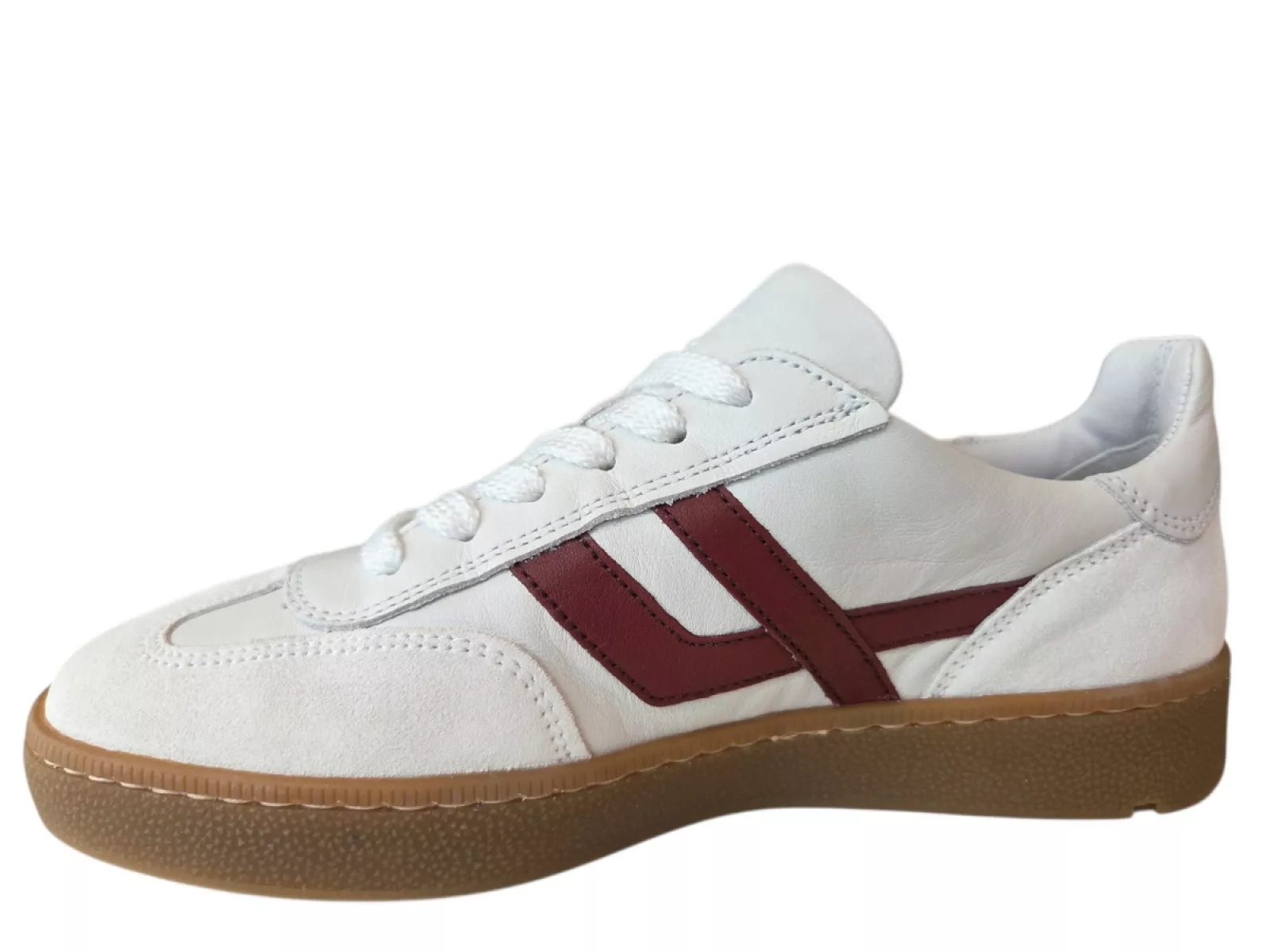 Ontdek de perfecte combinatie van stijl, comfort en kwaliteit met de Lloyd Brava dames sneakers in een frisse witte kleur met rode accenten. Deze tijdloze sneakers zijn ideaal voor het voorjaar en zomer 2026 en passen bij elke casual of sportieve outfit. Gemaakt van hoogwaardig leer voor een luxe uitstraling, met een comfortabele uitneembare leren voering en een duurzame rubberen profielzool voor optimale grip. De Lloyd Brava sneakers dames bieden een normale pasvorm en sluiten met stijlvolle veters, waardoor ze eenvoudig aan en uit te trekken zijn.