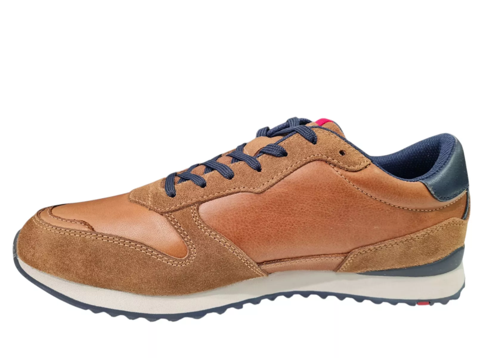 Ontdek de Lloyd Heren Sneakers, perfect voor stijl en comfort. Gemaakt van hoogwaardig leer en suède, met een ademend leer- en textielinterieur. Het uitneembare voetbed biedt extra comfort, terwijl de rubberen profielzool zorgt voor grip en duurzaamheid. De vetersluiting zorgt voor een perfecte pasvorm. Beschikbaar in een chique cognac kleur met blauwe accenten. Ideaal voor elke gelegenheid.