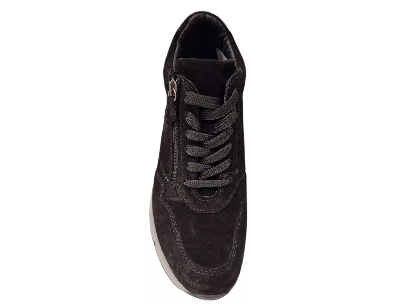 Ontdek de Longo Dames Veterschoenen, stijlvol en comfortabel. Gemaakt van zwart suède en gevoerd met textiel voor extra comfort. Het uitneembare voetbed biedt flexibiliteit, terwijl de rubberen profielzool zorgt voor grip. De combinatie van veter- en ritssluiting maakt deze schoenen praktisch en trendy. Perfect voor elke gelegenheid.