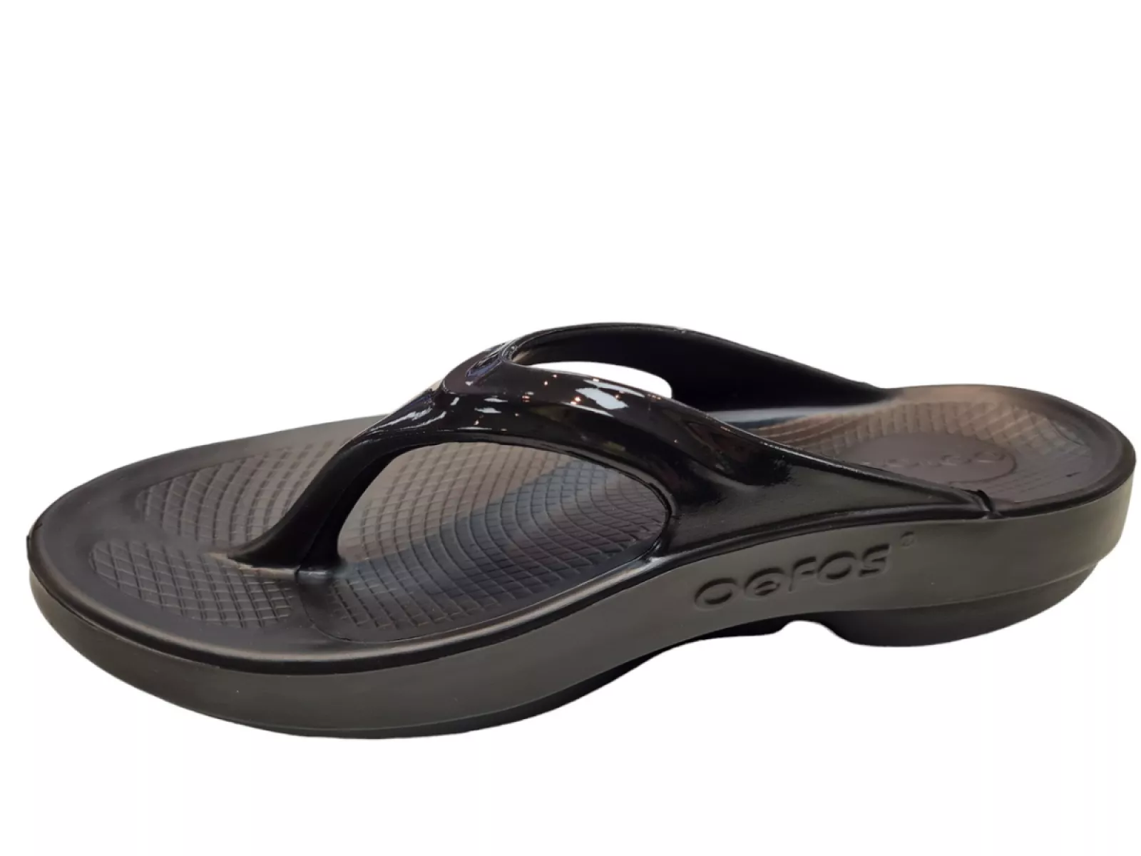 De OOFOS Dames Slippers zijn beschikbaar in de stijlvolle kleur zwart lak. Deze neutrale tint maakt het eenvoudig om de slippers te combineren met verschillende outfits, of je nu naar het strand gaat of gewoon thuis ontspant.
