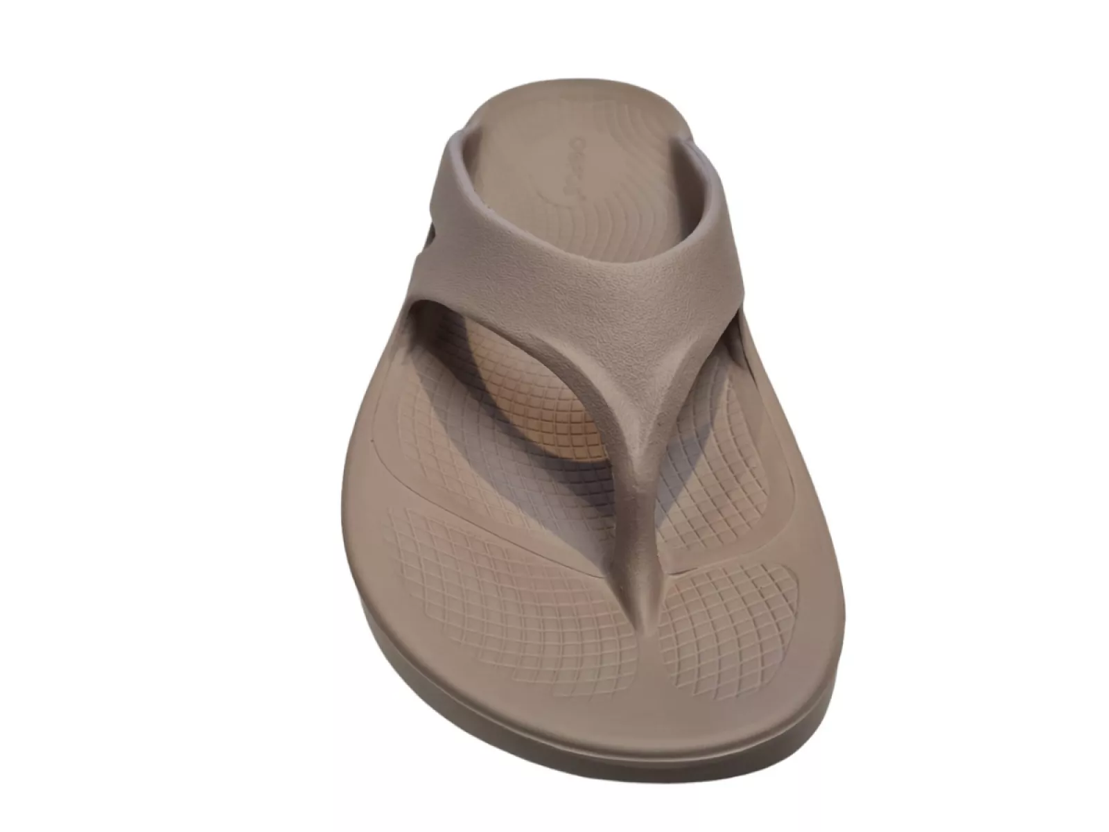Ervaar ultiem comfort met de OOFOS dames teenslippers. Gemaakt van innovatief OOfoam dat 37% meer impact absorbeert dan andere materialen. Dit vermindert stress op voeten en gewrichten, terwijl het anatomische voetbed zorgt voor een natuurlijke afwikkeling en ondersteuning van de voetboog.