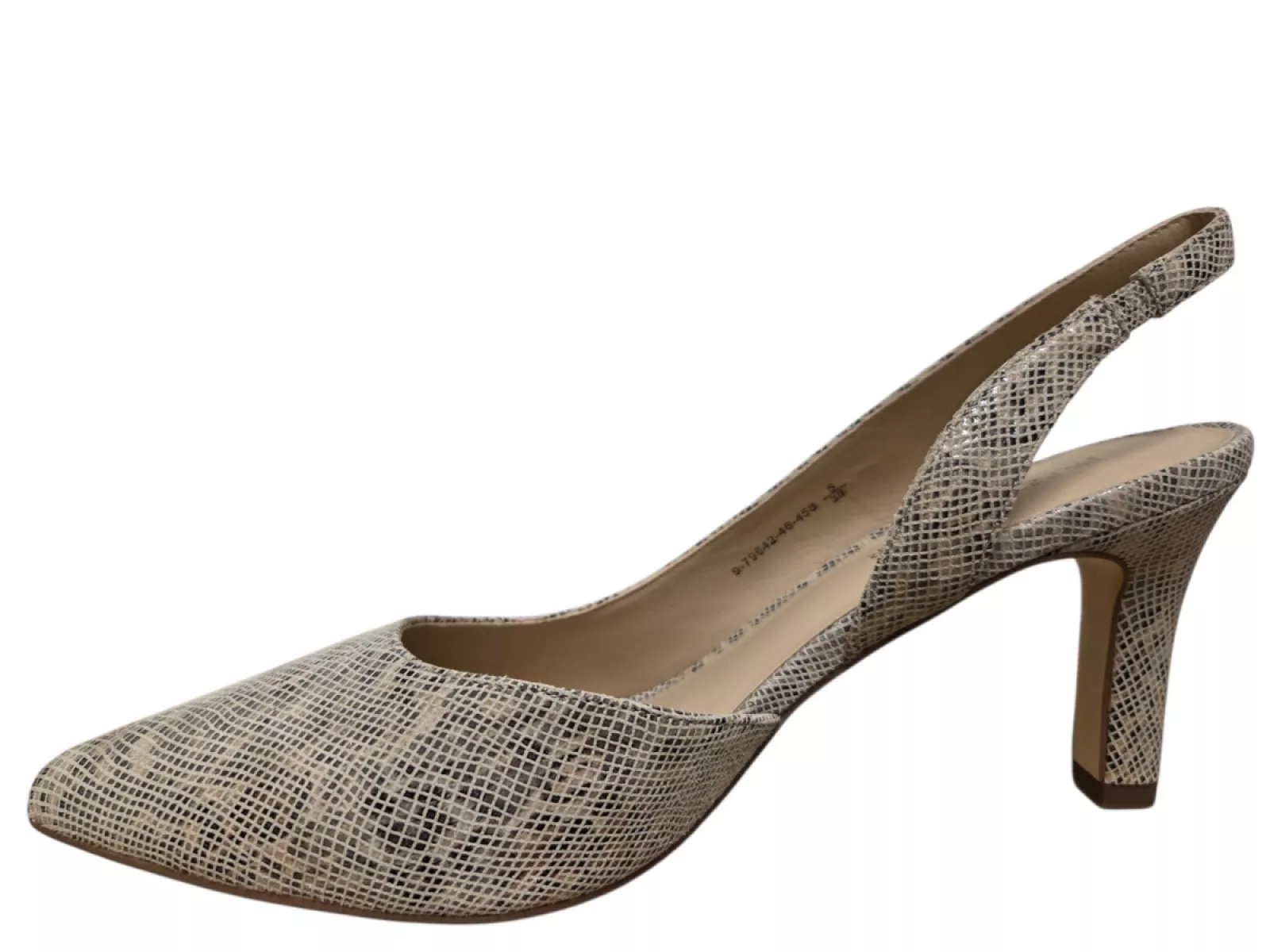 De Peter Kaiser 9-9-79642-46 458 dames pump met open hiel is een stijlvolle en elegante keuze voor het voorjaar en zomer 2026. Deze exclusieve luipaard pumps voor dames combineren luxe materialen met een tijdloos design. Perfect voor zowel zakelijke outfits als feestelijke gelegenheden.