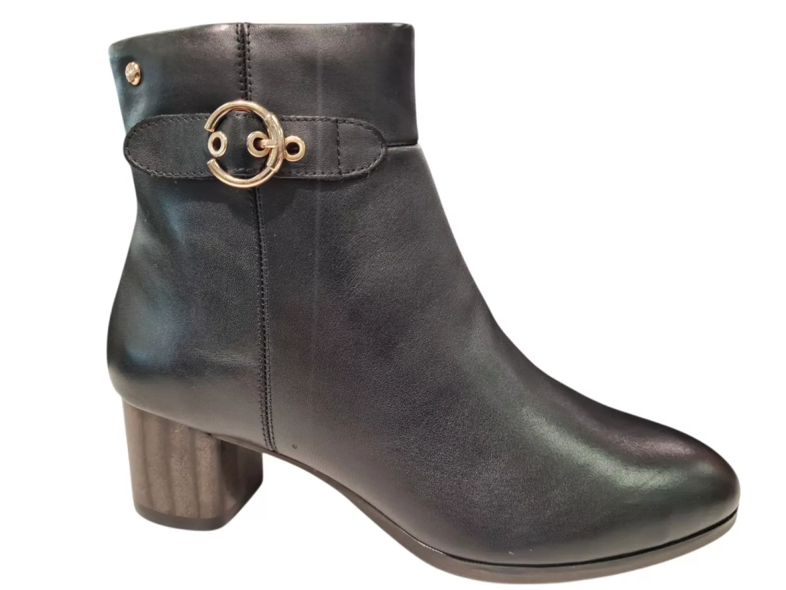 Deze stijlvolle enkellarsjes van Pikolinos zijn vervaardigd uit soepel leer en gevoerd met luxe leer en suede. De blokhak biedt comfort, terwijl het vaste voetbed ondersteuning biedt bij elke stap. De robuuste rubberen zool zorgt voor grip en duurzaamheid. De zwarte kleur met gouden details maakt ze perfect voor elke gelegenheid. Voeg een vleugje elegantie toe aan je garderobe met deze veelzijdige enkellarsjes.