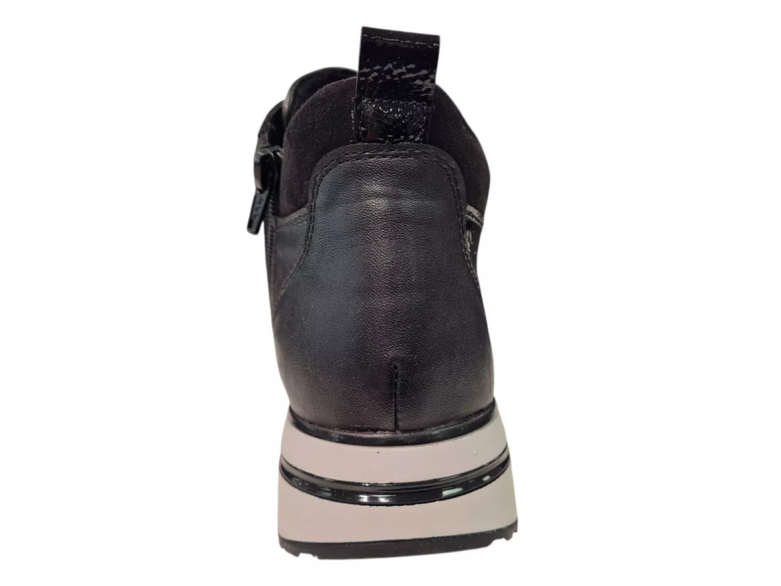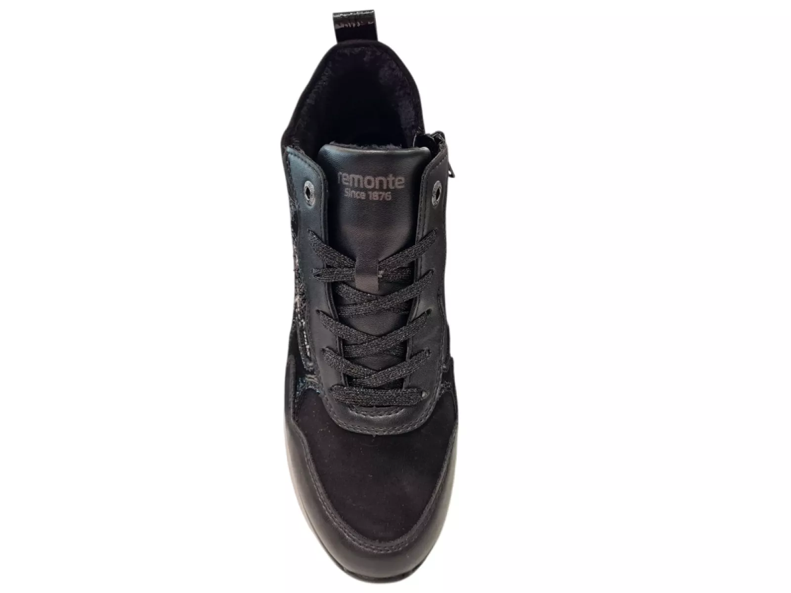 Ontdek de Remonte Dames sneakers in zwart, een half hoog model dat stijl en comfort combineert. Gemaakt van nubuck leer en fleece gevoerd voor extra warmte. Voorzien van een uitneembaar voetbed, rits- en vetersluiting en een ronde neus. Perfect voor dagelijks gebruik.