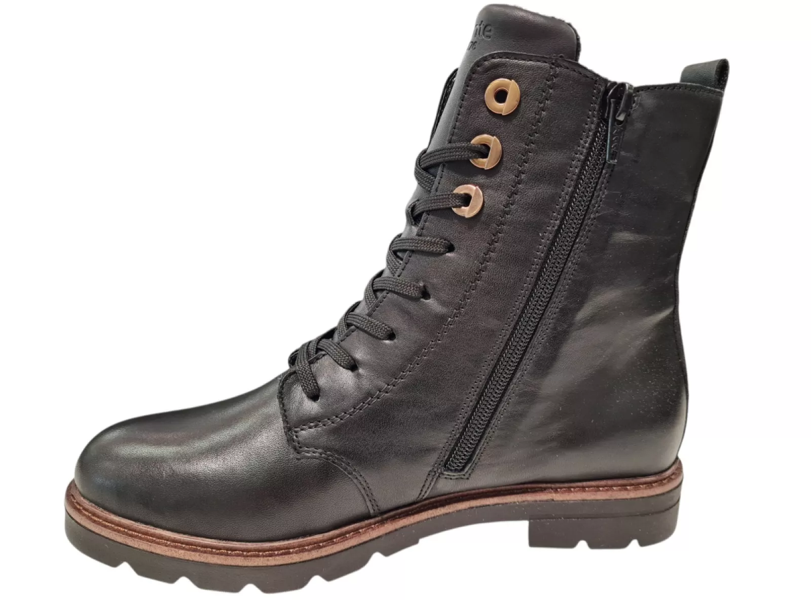 Ontdek de Remonte Dames Veterboots, perfect voor elke gelegenheid. Gemaakt van stevig leer met een comfortabele textielen voering, bieden deze boots optimaal comfort. Het uitneembare voetbed zorgt voor extra flexibiliteit. De combinatie van rits en vetersluiting garandeert een perfecte pasvorm. Met een robuuste rubberen profielzool heb je de grip die je nodig hebt. Verkrijgbaar in zwart met stijlvolle gouden accenten. Stap stijlvol en comfortabel de deur uit!