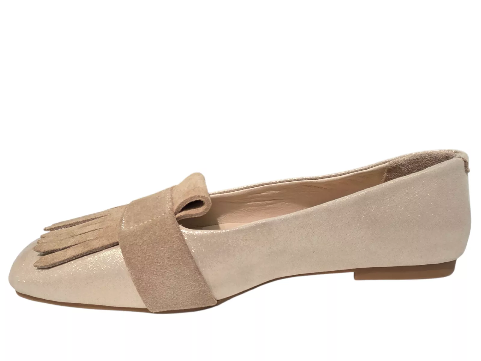 Roberto D’Angelo Dalton Platino Velour Camel Instappers Beige Metallic Leer Dames