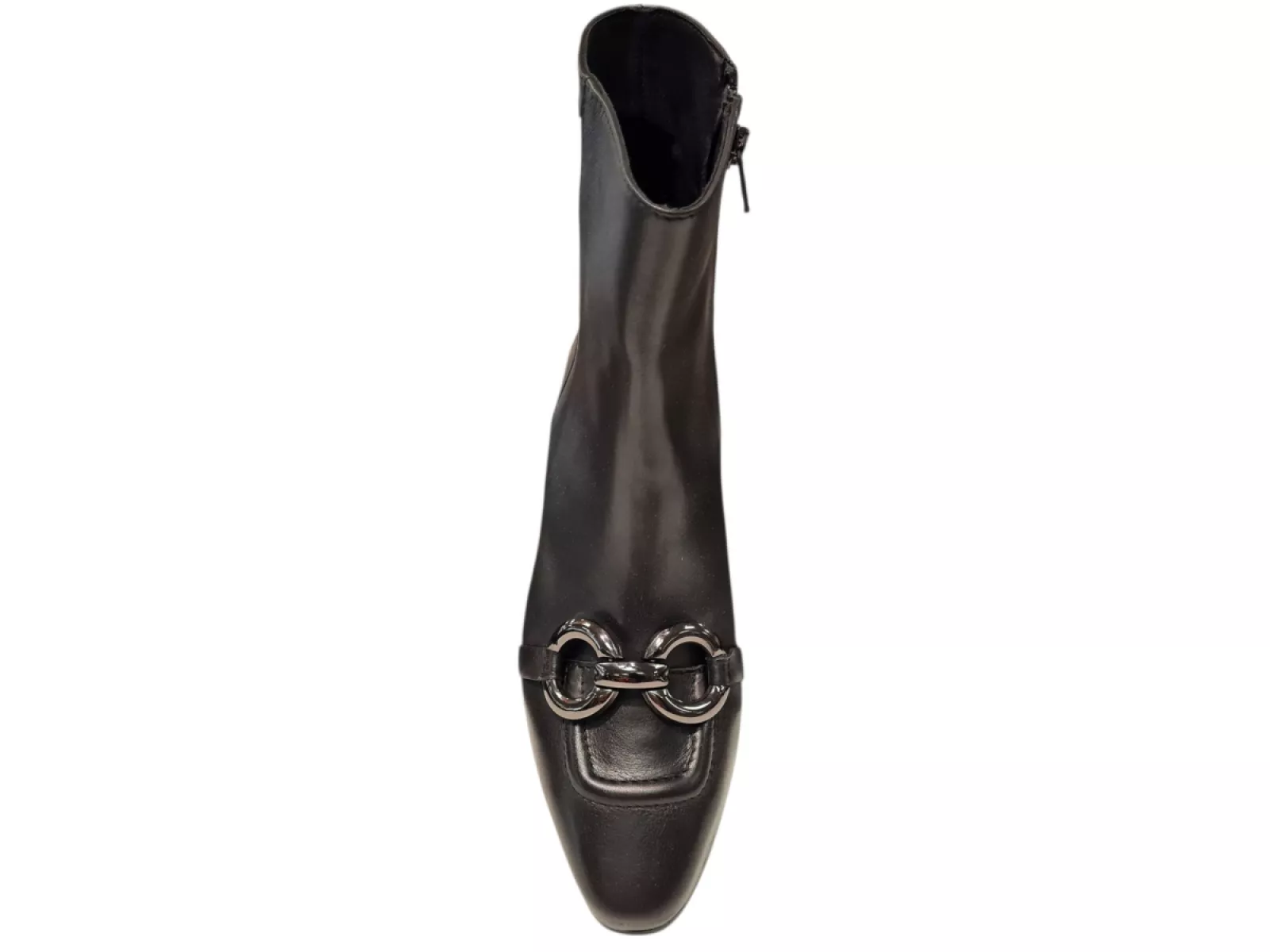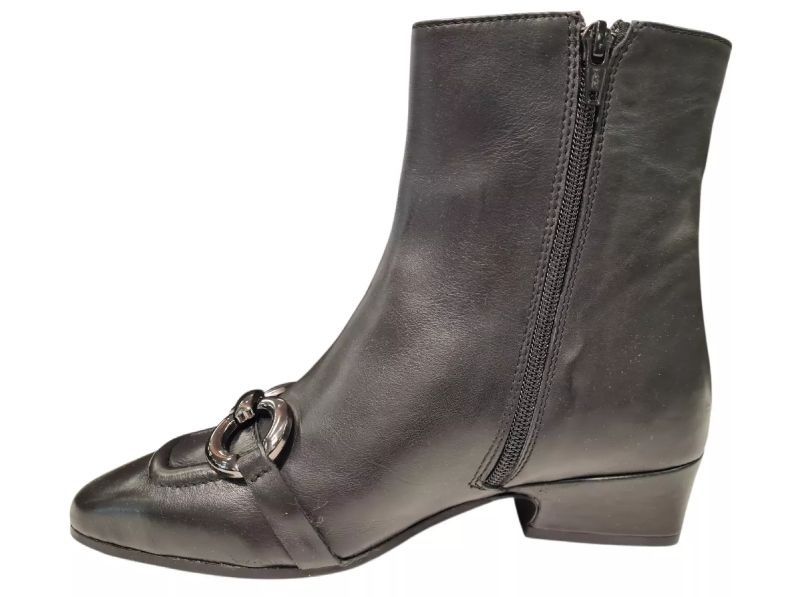 Ontdek de Roberto D Angelo Dames Enkellaarzen, stijlvol en van hoge kwaliteit. Gemaakt van premium leer met een luxe leren voering, bieden ze comfort door het vaste voetbed. De blokhak en rubberen zool zorgen voor stabiliteit, terwijl de ritssluiting het aan- en uittrekken vergemakkelijkt. Met een puntige neus en een speelse kettingdetails in zwart zijn deze laarzen een perfecte aanvulling op jouw outfit. Perfect voor elk seizoen!