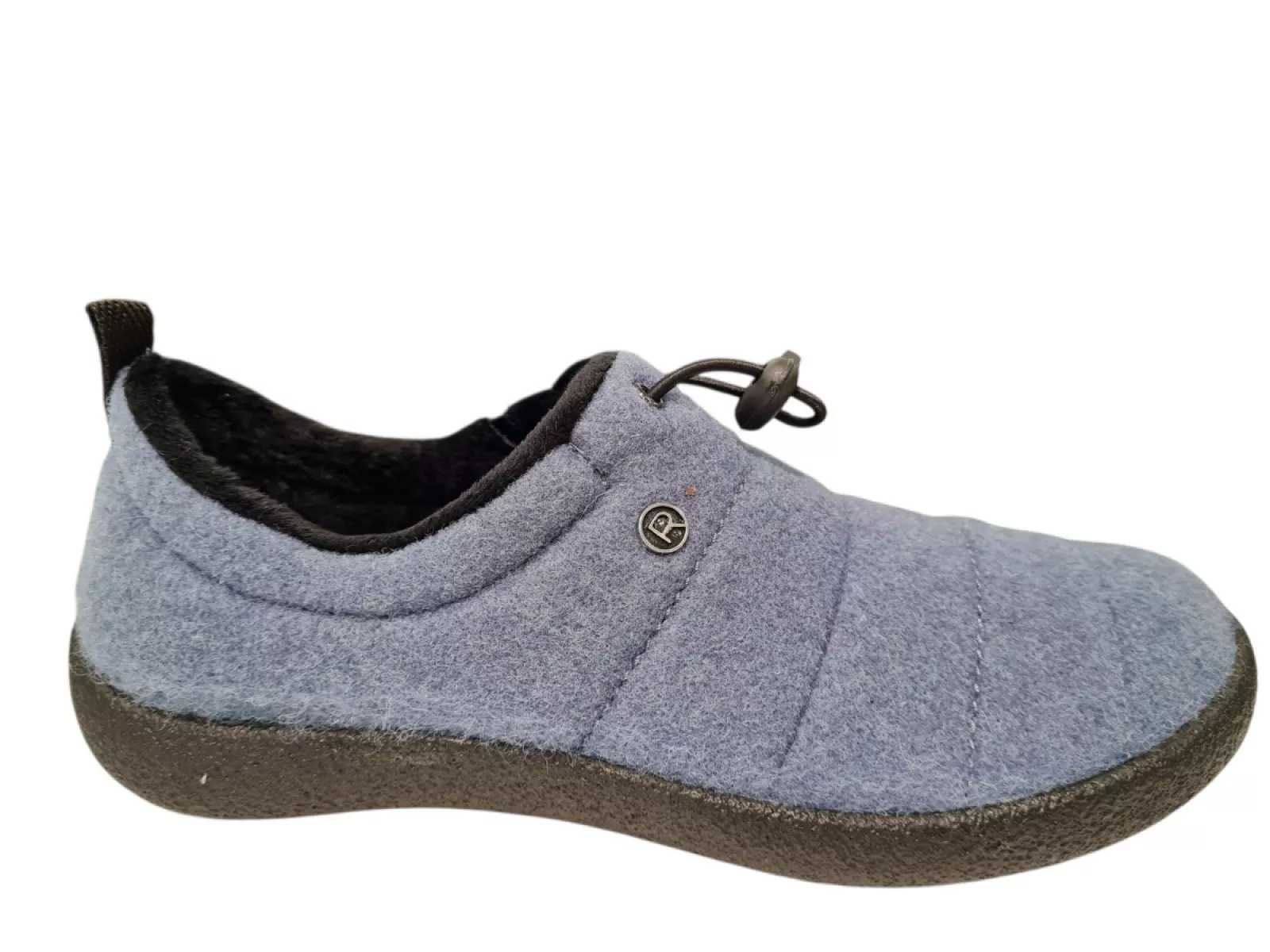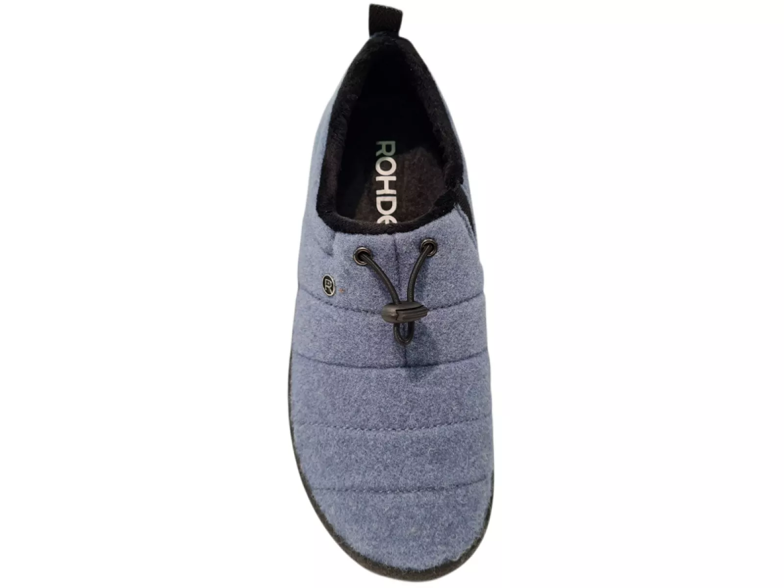 Comfortabele Rohde Dames Pantoffels in blauw. Gemaakt van imitatie wol en gevoerd met zachte imitatie vacht voor extra warmte. Het uitneembare voetbed zorgt voor optimale ondersteuning, terwijl het trekkoord een perfecte pasvorm garandeert. De rubberen profielzool biedt grip en stabiliteit. Beschikbaar bij de pantoffelspecialist.nl. Maak je voeten blij!