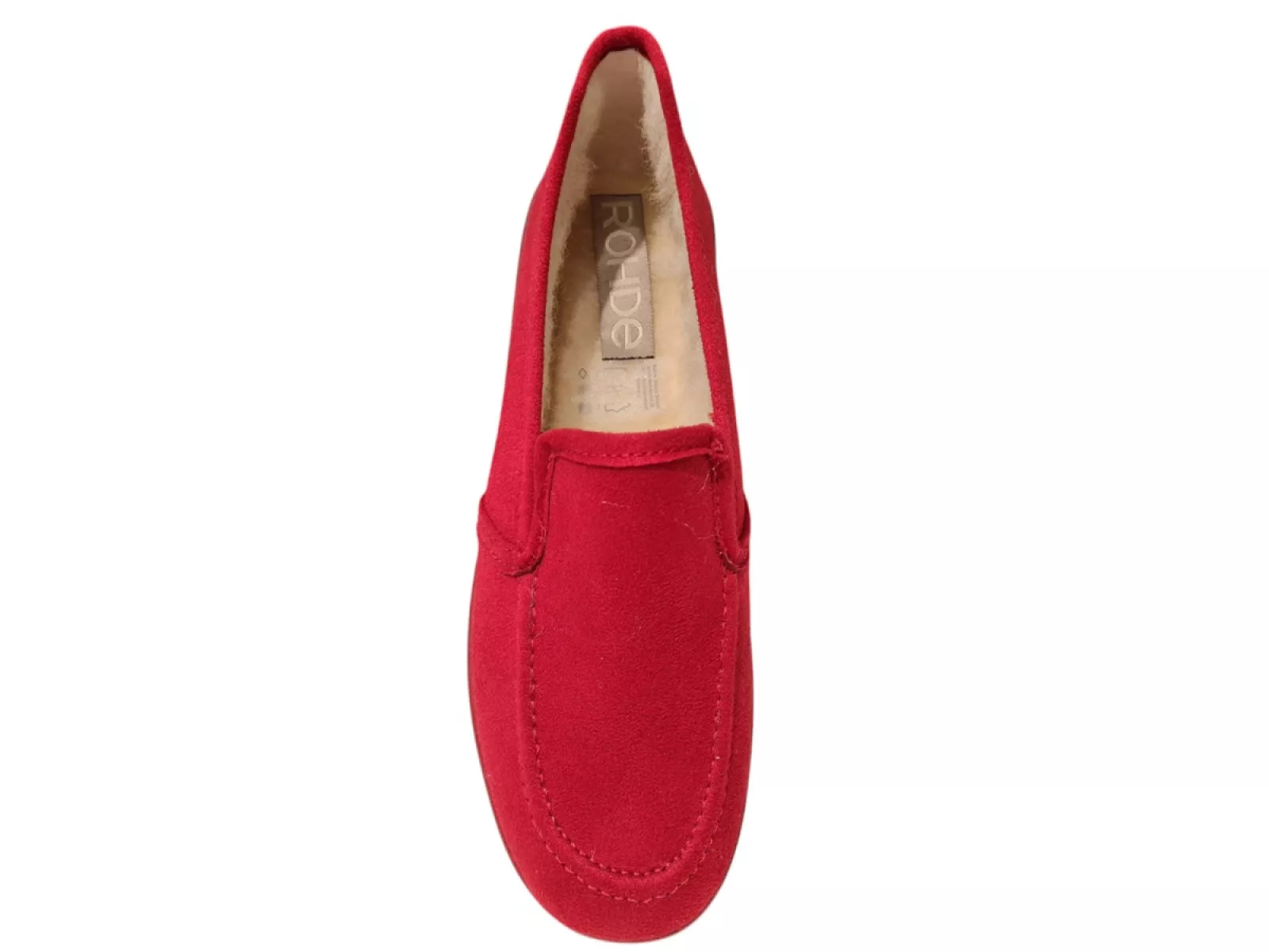 Ervaar comfort en stijl met de Rohde dames pantoffels. Deze rood geklede pantoffels zijn vacht gevoerd voor optimale warmte en hebben een gesloten hiel voor extra steun. De rubberen profiel zool biedt grip en duurzaamheid. Rohde, opgericht in 1862, staat bekend om zijn uitstekende kwaliteit en pasvorm.
