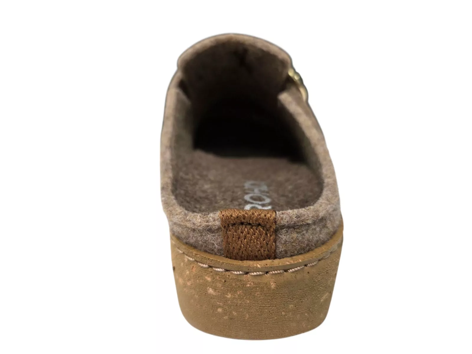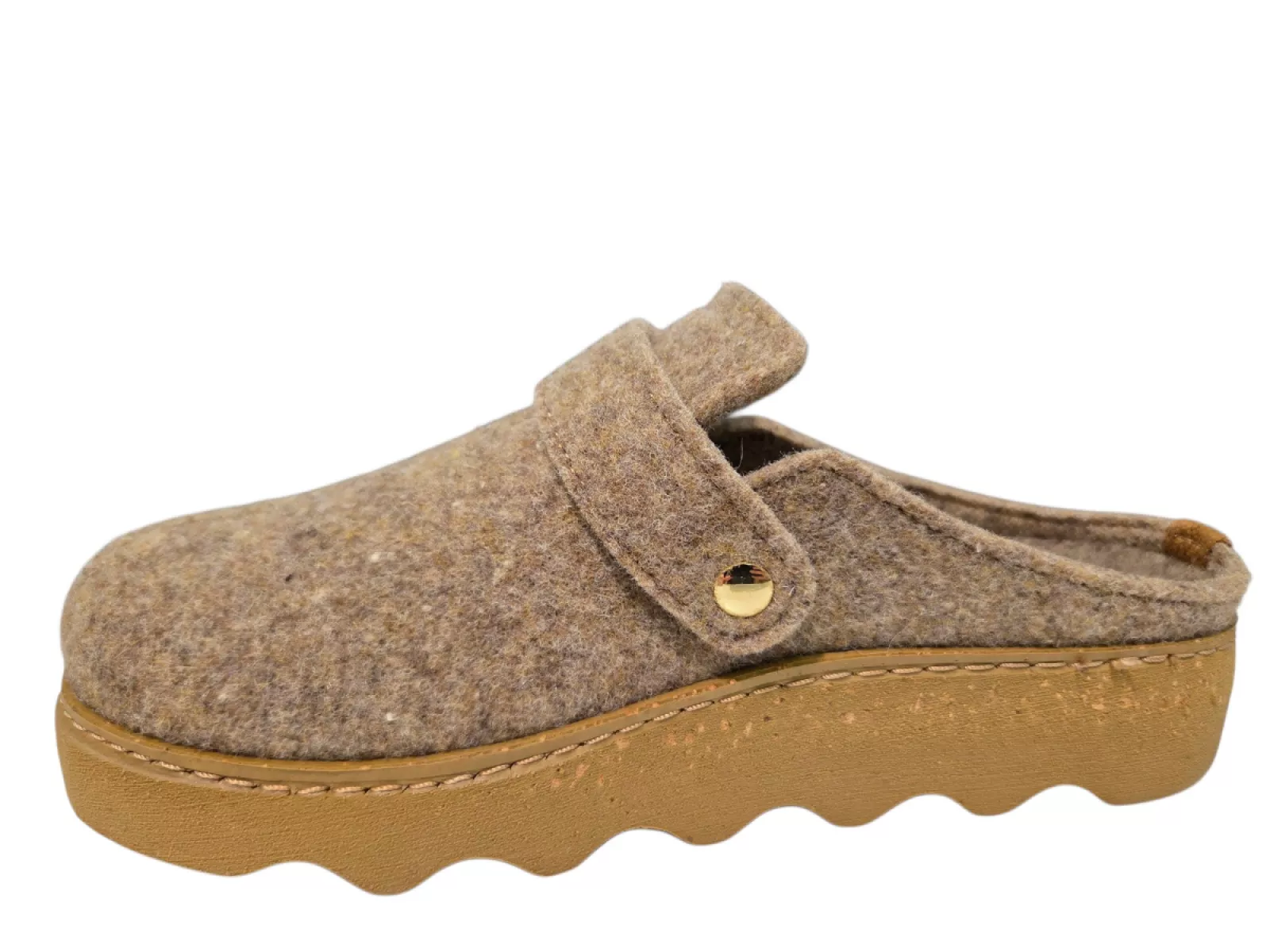 Comfortabele vilt pantoffels voor dames, zowel gekleed als gevoerd met vilt. Voorzien van een rubberen zool en een open hiel voor optimale ventilatie. De gesp sluiting op de wreef zorgt voor een perfecte pasvorm. Verkrijgbaar bij de pantoffelspecialist.nl. Perfect voor thuis!