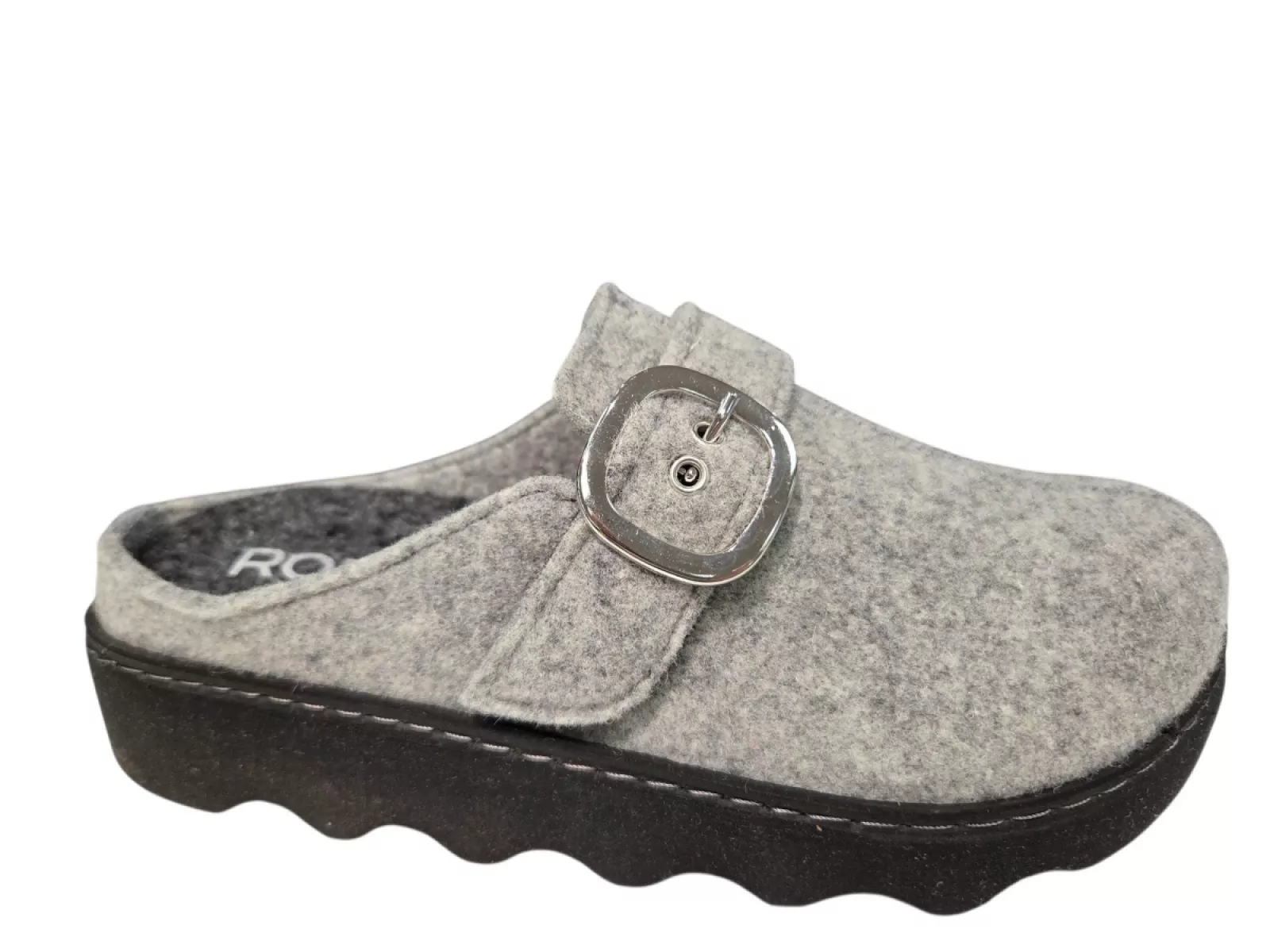Ontdek de Rohde Dames Pantoffels, perfect voor comfort en stijl. Deze pantoffels zijn vilt gekleed en textiel gevoerd, met een praktische gesp sluiting over de wreef en een open hiel voor optimale ventilatie. Het uitneembare voetbed zorgt voor extra comfort, terwijl de rubberen zool uitstekende grip biedt. Verkrijgbaar in grijs met een zwarte zool. Nu te koop bij de pantoffelspecialist.nl.