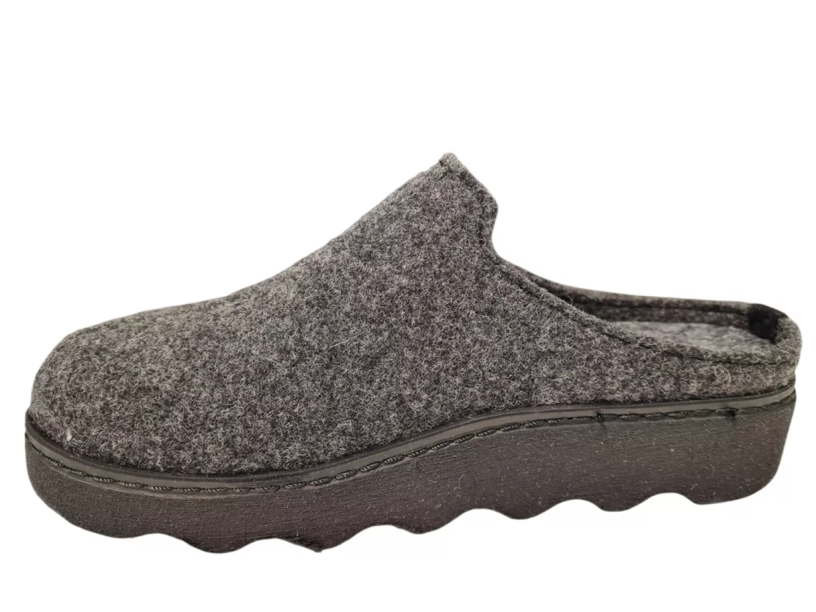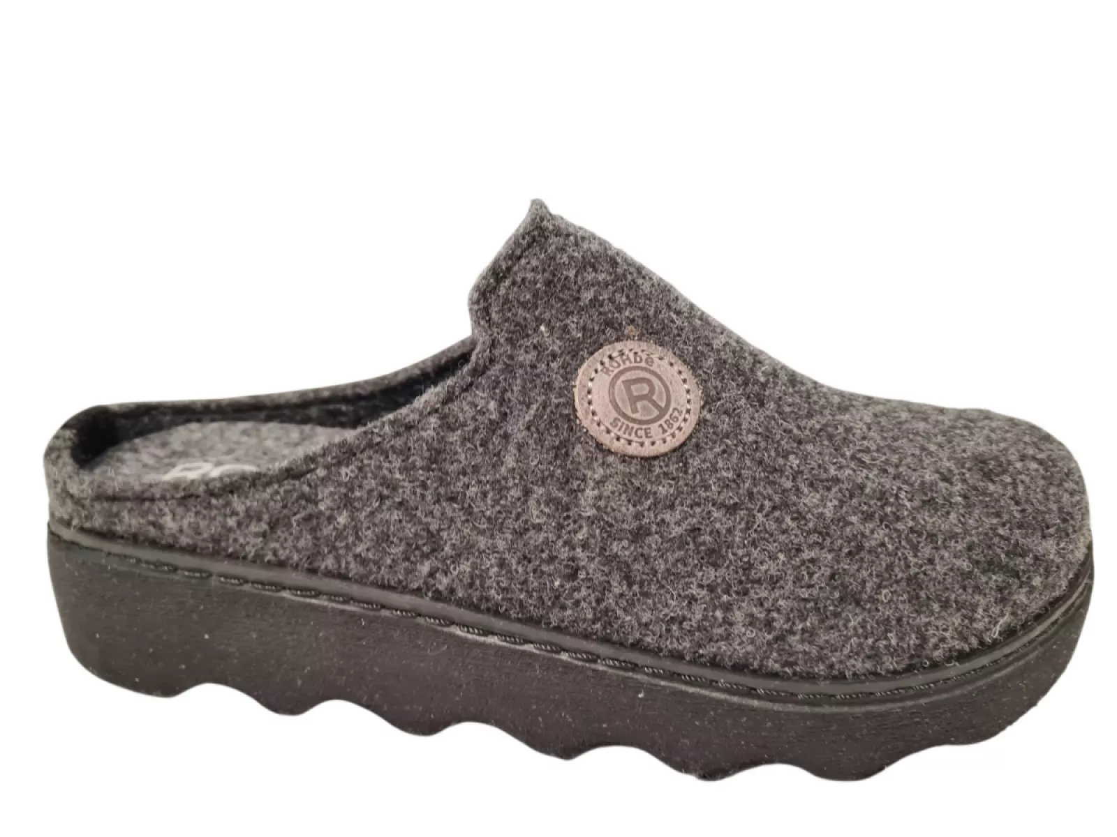 Ervaar comfort met de Rohde dames pantoffels. Gemaakt van hoogwaardig vilt, zowel gekleed als gevoerd, bieden ze een zachte en warme pasvorm. De open hiel zorgt voor ademend vermogen, terwijl het uitneembare voetbed aanpasbaarheid biedt. De donkere rubberen profielzool zorgt voor grip en stabiliteit. Verkrijgbaar in donker grijs.