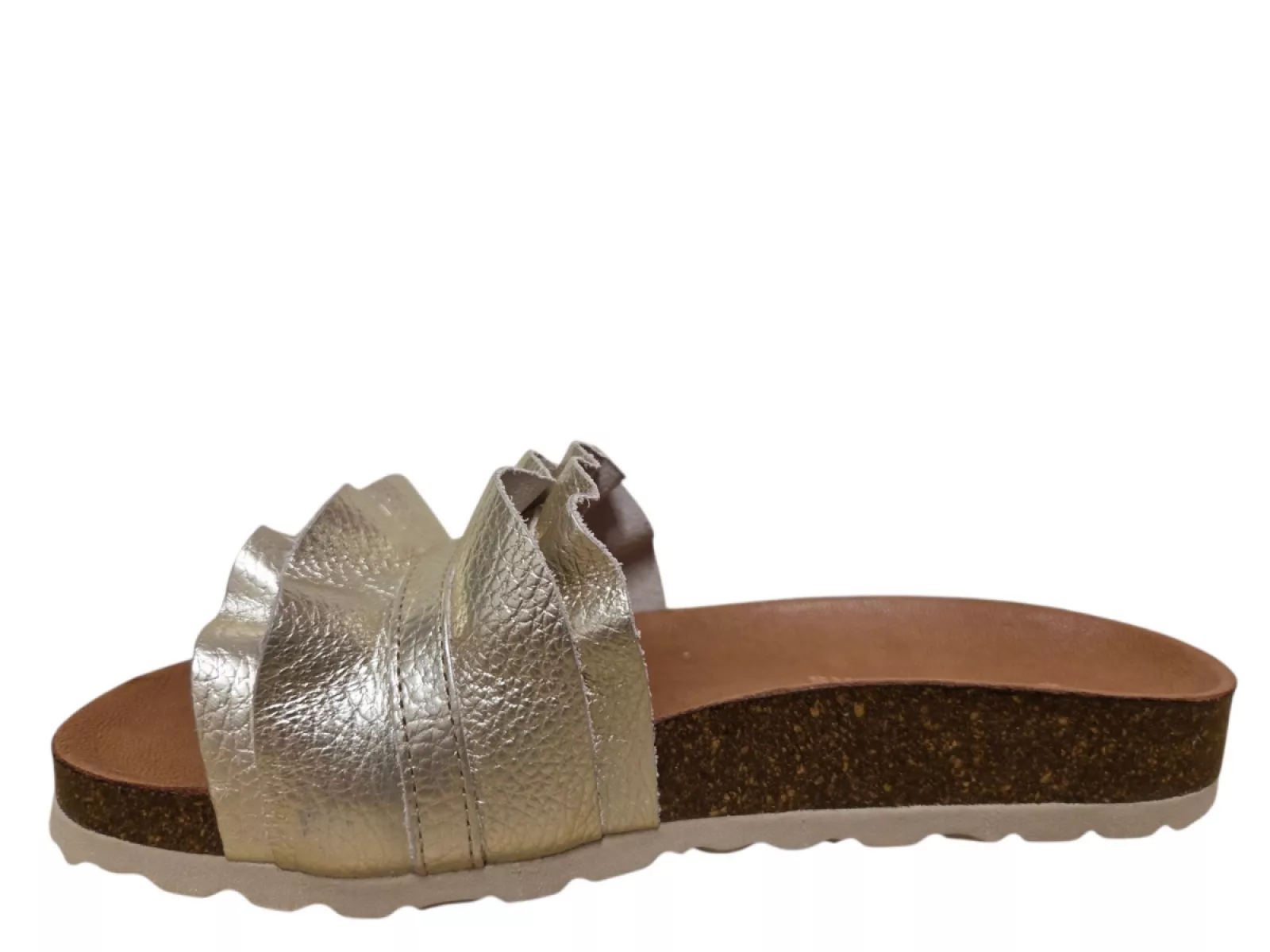 De Verbenas dames slippers Rocio Oro goud combineren mode en functionaliteit. De metallic gouden afwerking geeft een elegante touch aan elke outfit – van jurken tot shorts en linnen broeken.