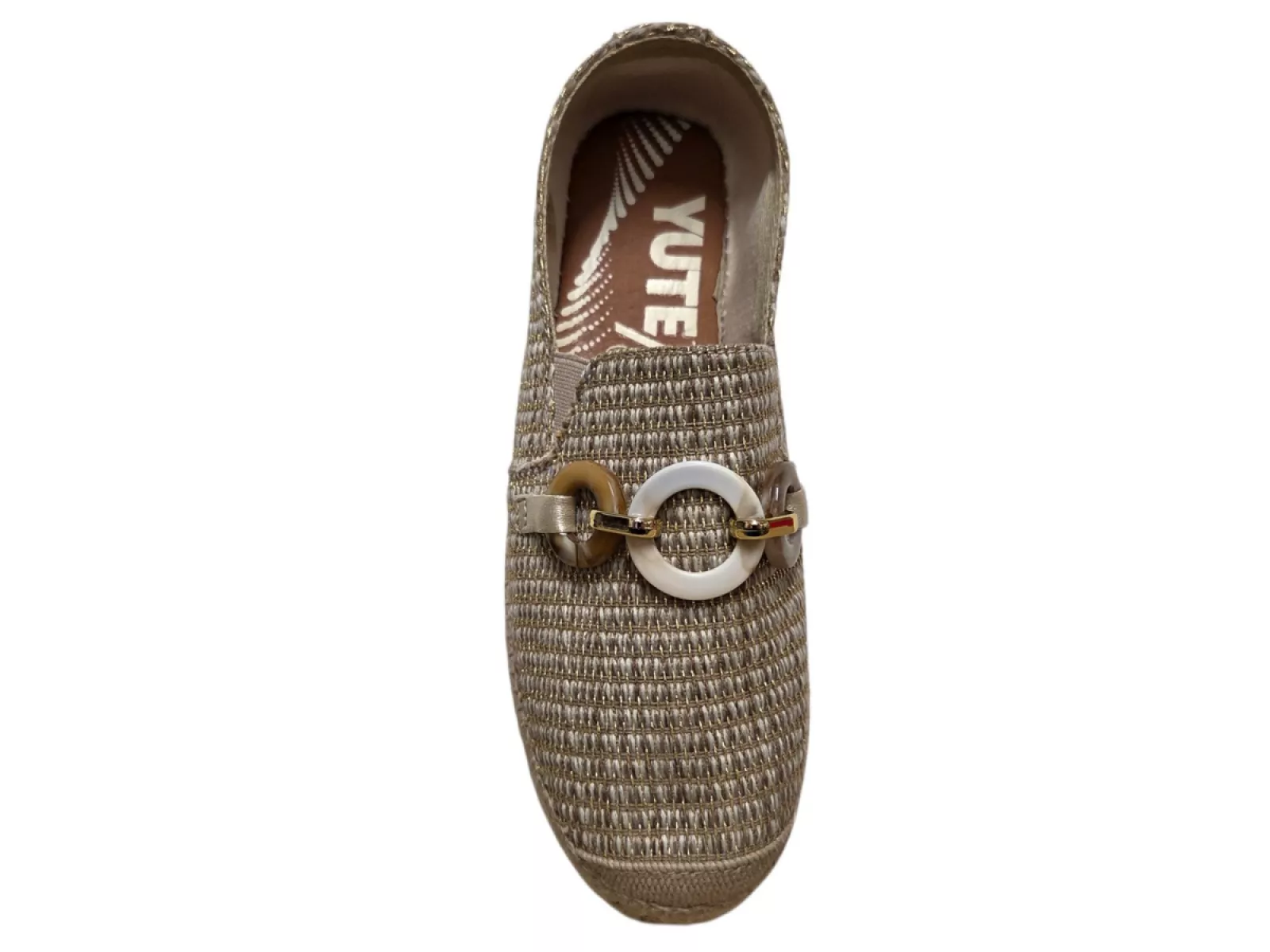 Stijlvolle instappers in beige met gouden details, perfect voor lente en zomer 2026. De textielen buitenkant gecombineerd met een leren en textielen voering zorgt voor comfort en ademend vermogen. Het vaste leren voetbed en de rubberen zool bieden stevigheid, terwijl de doorlopende hak van 4 cm een subtiele lift geeft. Dankzij het elastieken instapontwerp zijn ze gemakkelijk aan en uit te trekken. Normale breedte, maar valt klein – bestel een maat groter voor de perfecte pasvorm.