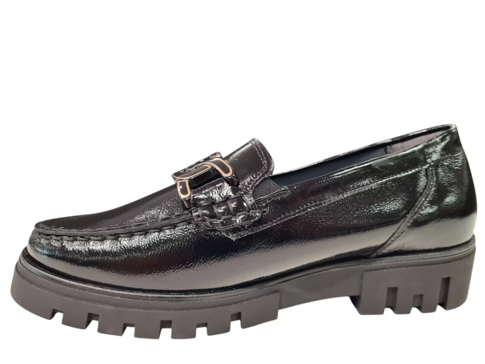 - Lak Gekleed: De buitenkant van deze instappers is gemaakt van prachtig lakleer, wat zorgt voor een stijlvolle uitstraling. De glanzende afwerking geeft een chique touch aan elke outfit.