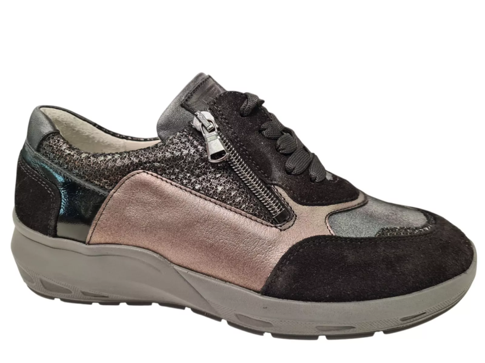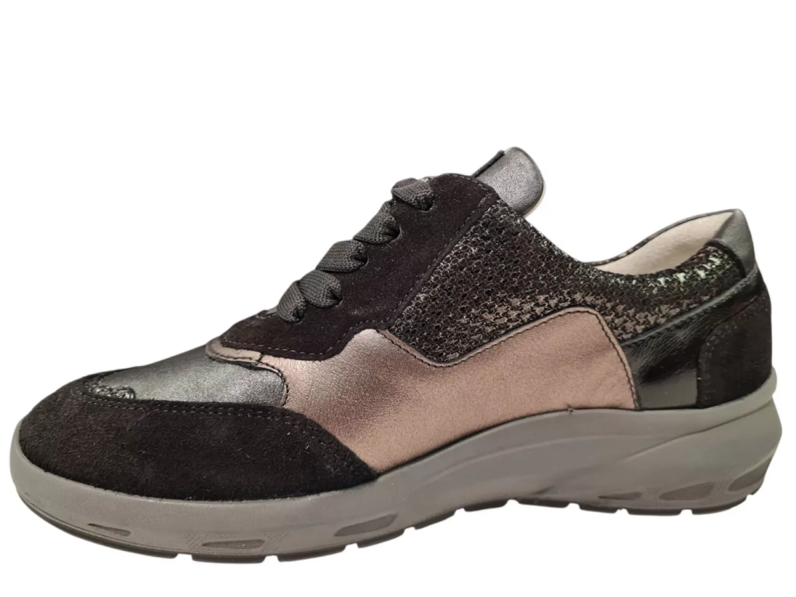 Ontdek de Waldlaufer Dames Sneakers, perfect voor stijl en comfort. Gemaakt van hoogwaardig leer en suède, bieden deze sneakers een luxe uitstraling en duurzaamheid. De leren voering zorgt voor een aangename pasvorm, terwijl de rubberen profielzool grip en stabiliteit biedt. Met een praktische rits en vetersluiting zijn ze eenvoudig aan te trekken. Beschikbaar in breedtemaat M en uitgevoerd in zwart met bronzen accenten. Een ideale keuze voor elke gelegenheid.