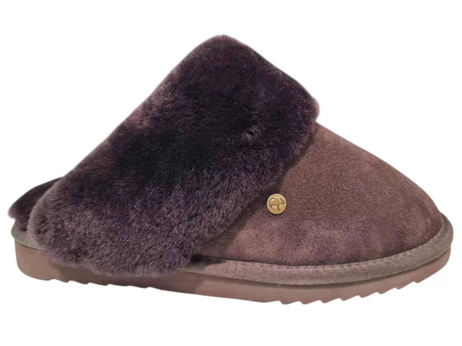 - Luxe donker bruine suède pantoffels voor dames