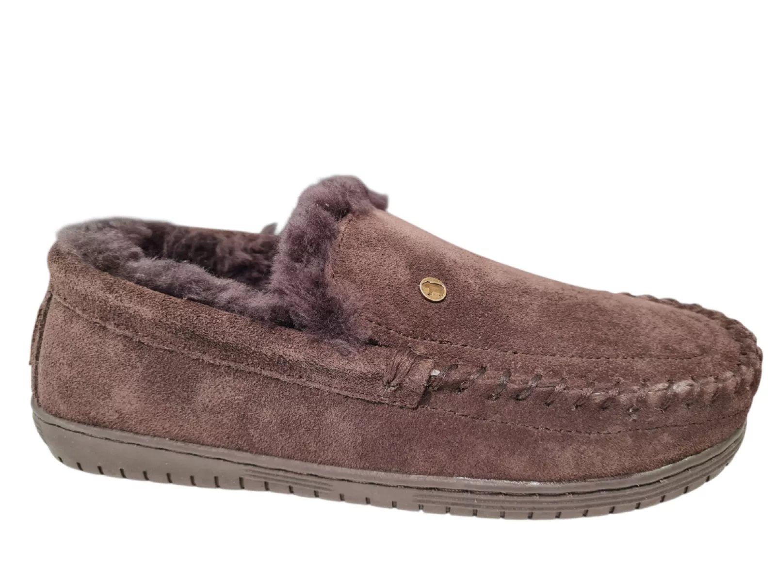 Warmbat Grizzly Men Suede Choco – Donkerbruine Heren Pantoffels van Suède