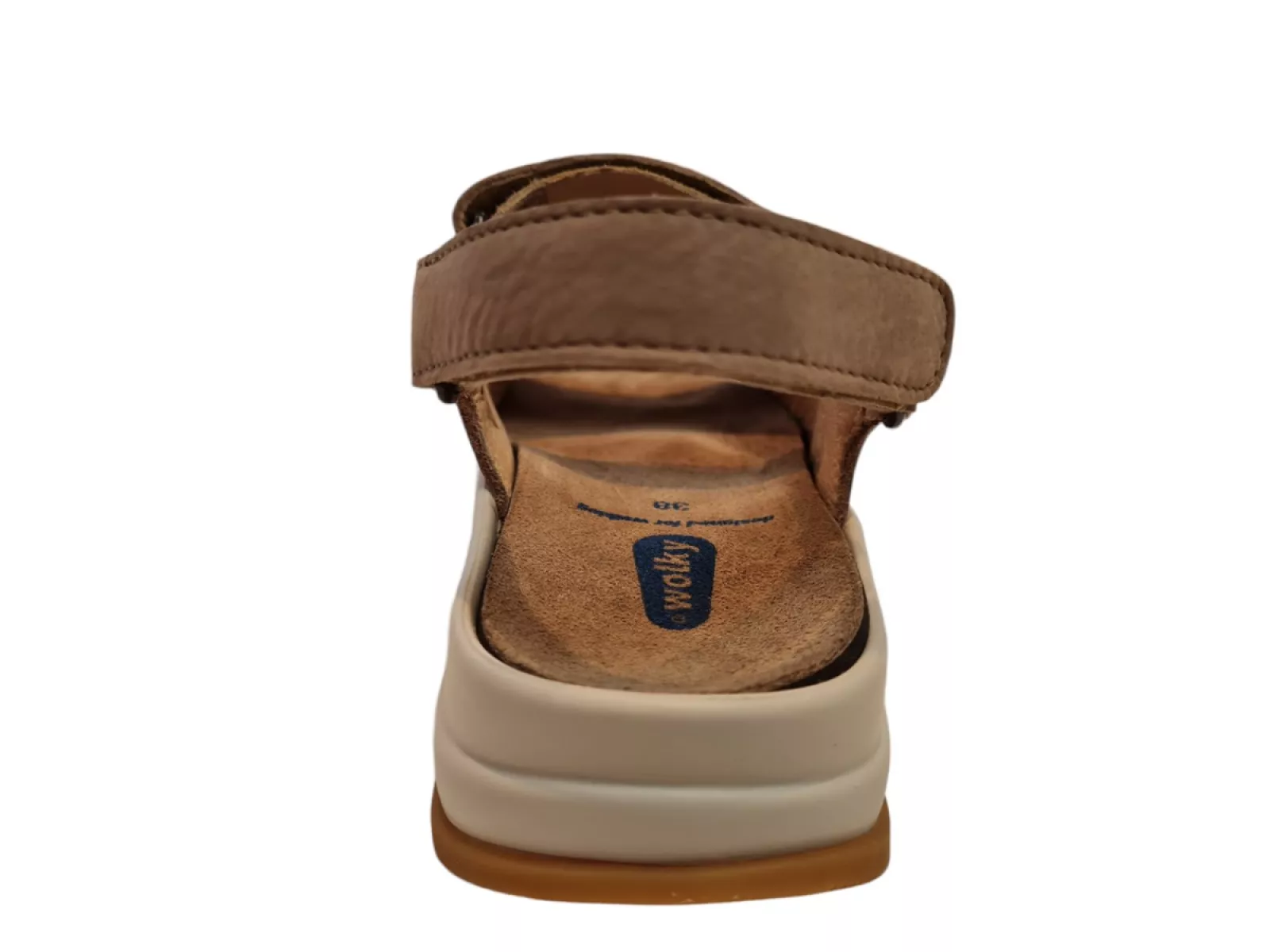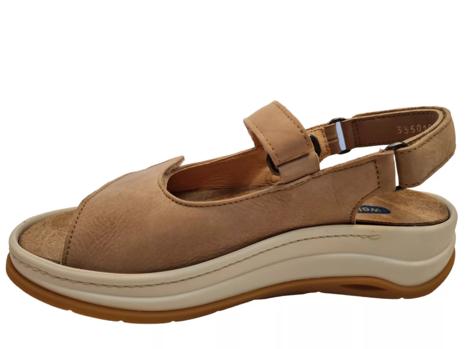 Wolky 0335010 125 Dames Sandalen Uitneembaar Voetbed Leer Klittenbandsluiting Beige