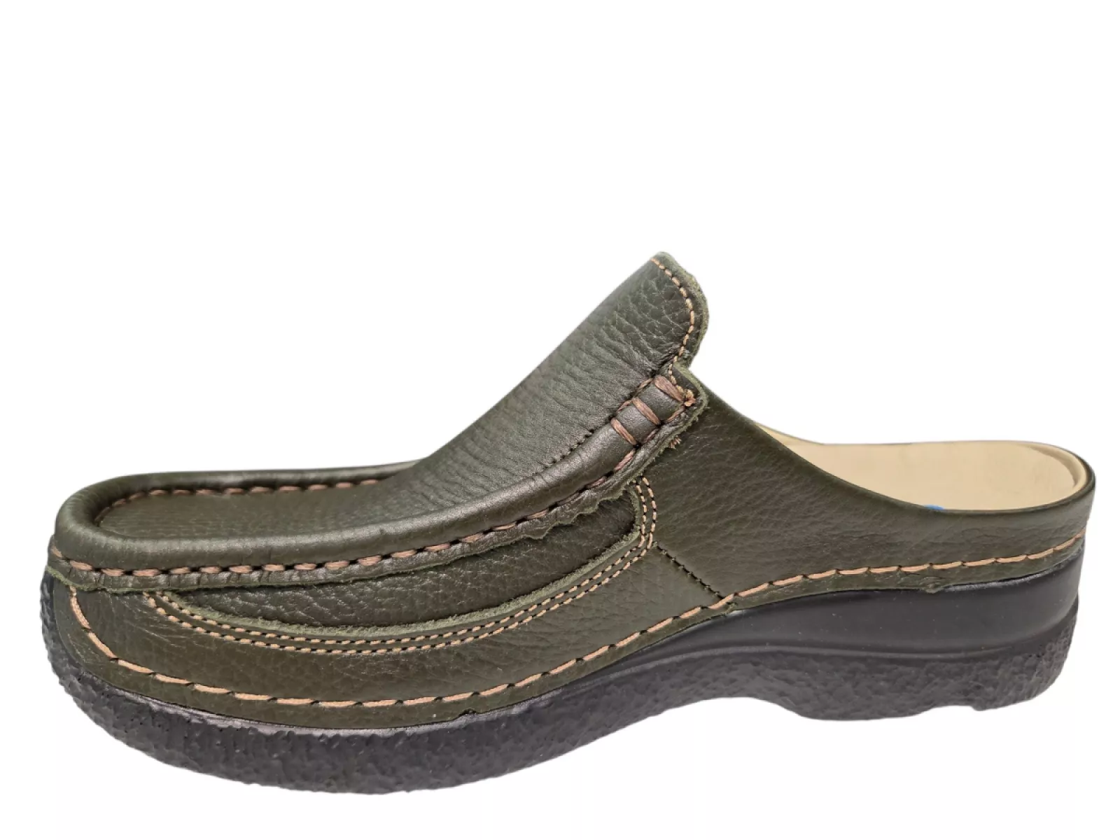 Wolky Olijf Groene Leren Dames Muilen Klompjes